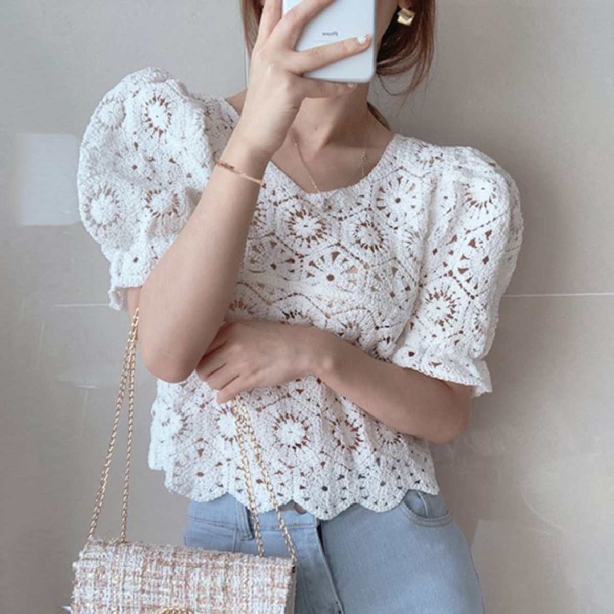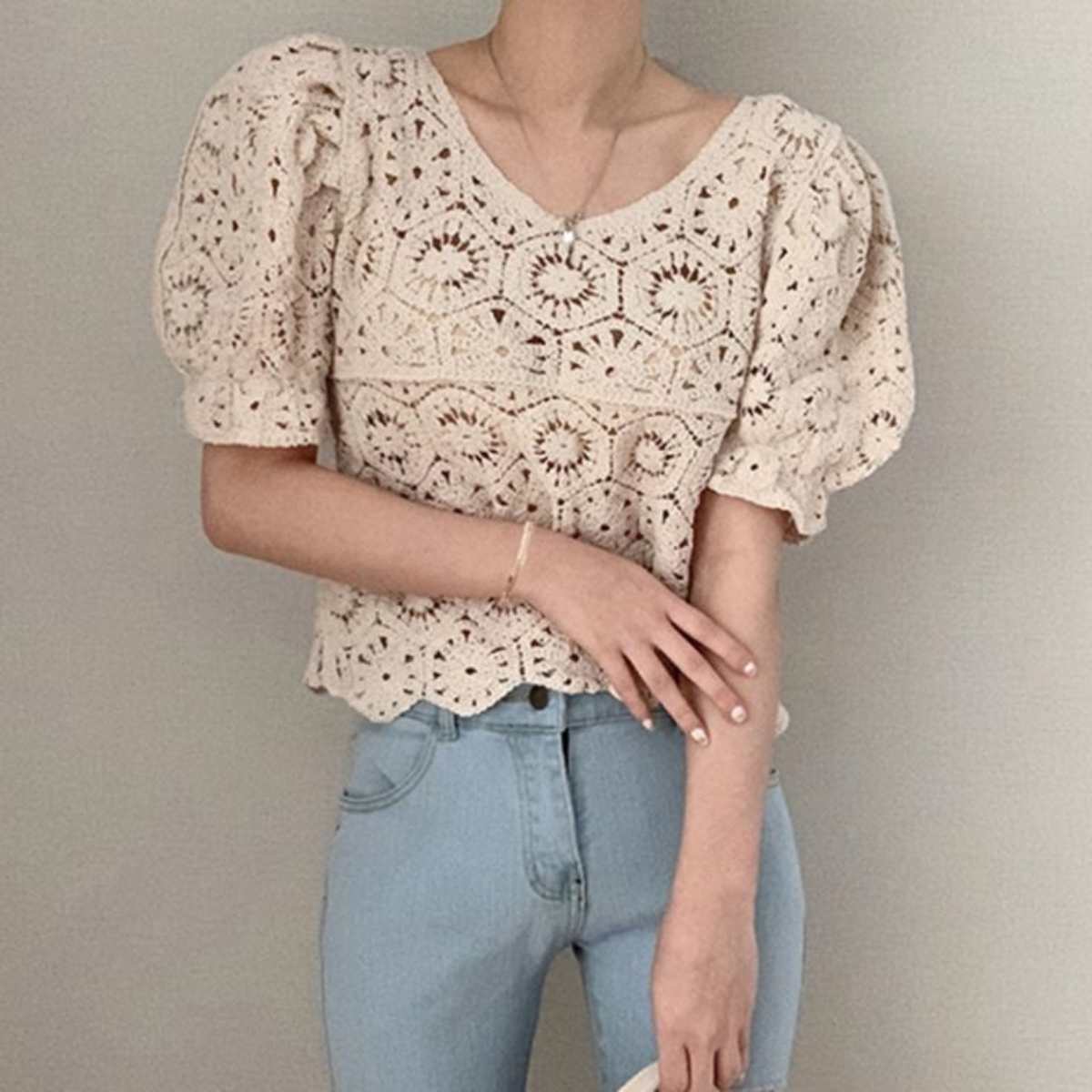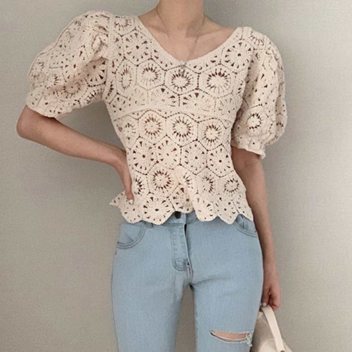 かぎ針レーストップス レディース スモック 半袖 Tシャツ ナチュラル ガーリー フェミニン 夏 レ