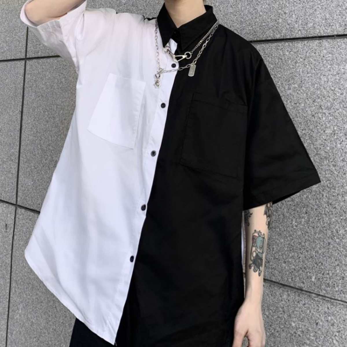 アシンメトリーシャツ レディース 半袖シャツ モノトーン ゴシック ゴスロリ ストリート ベルシー