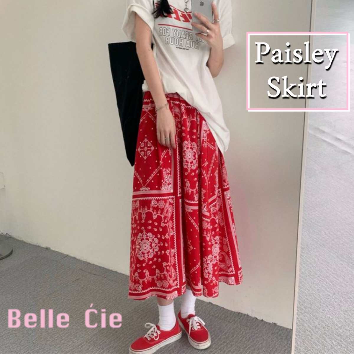 ペイズリー ロングスカート 秋物 レディース ボトムス バンダナ柄 レッド 赤 ペイズリー柄 ストリ