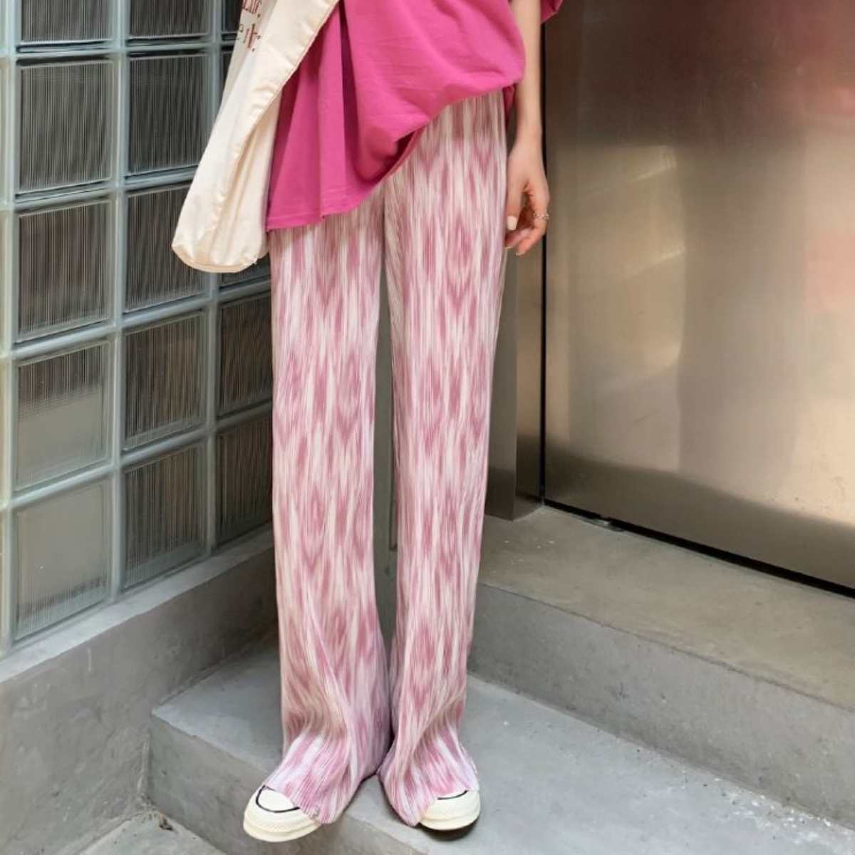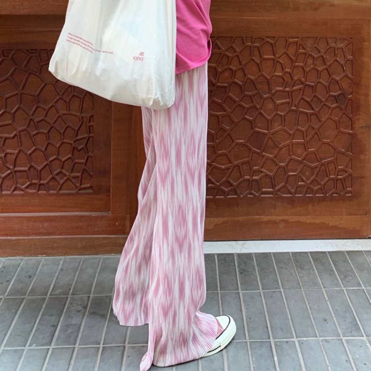 タイダイ風プリーツイージーパンツ レディース ワイドパンツ 光沢感 プリーツパンツ ボトムス エスニ