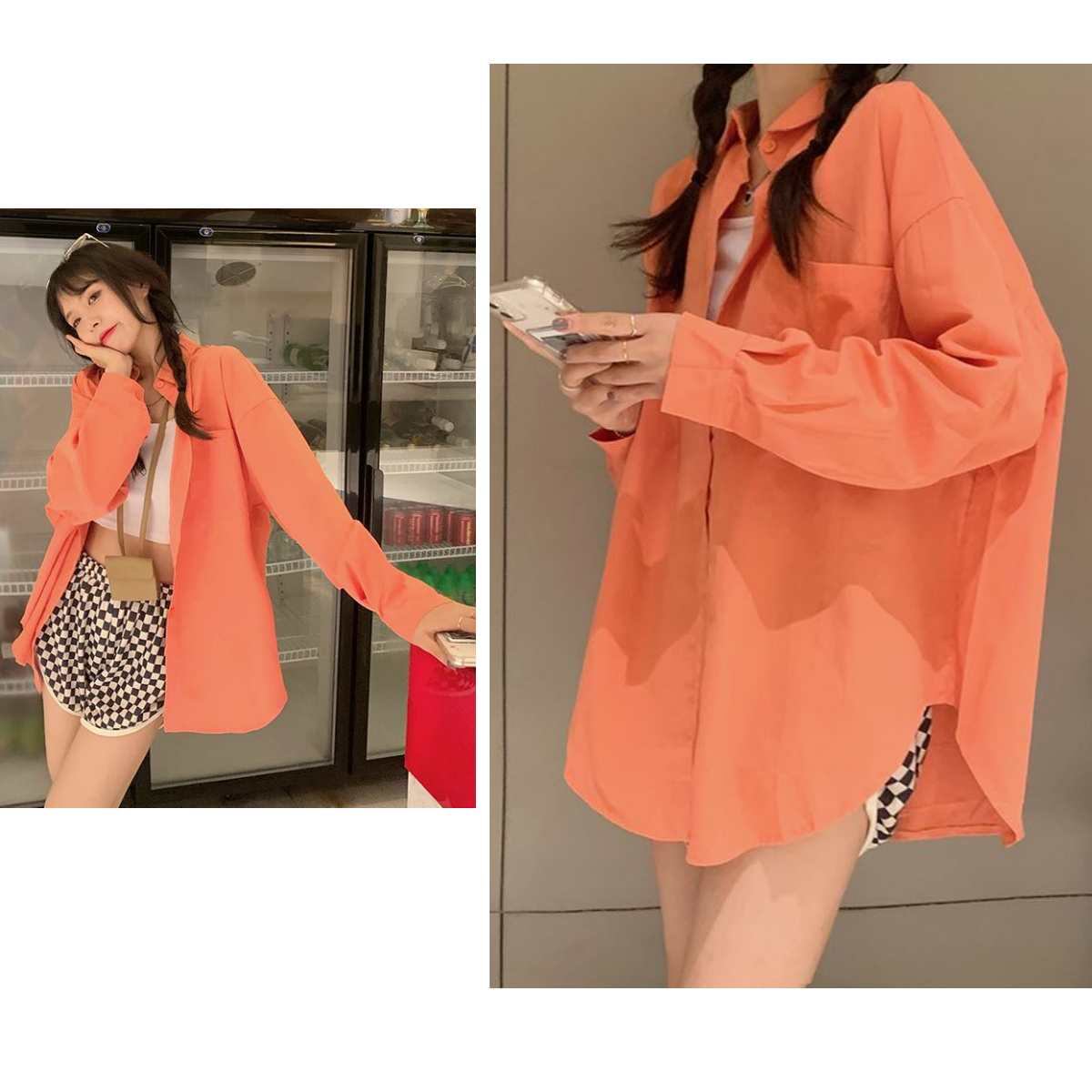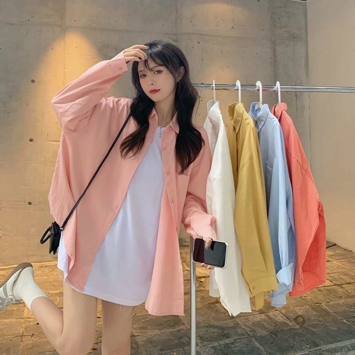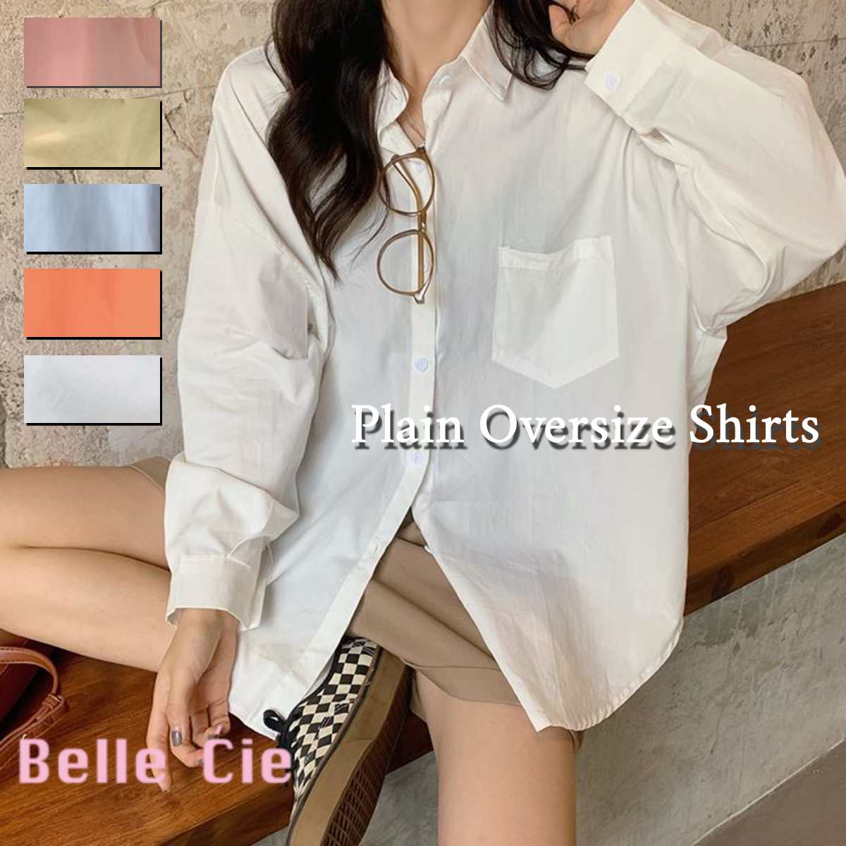 5色 カラー シャツ 長袖 シャツ ビッグシャツ レディース 長そで 無地シャツ ルーズシャツ 襟