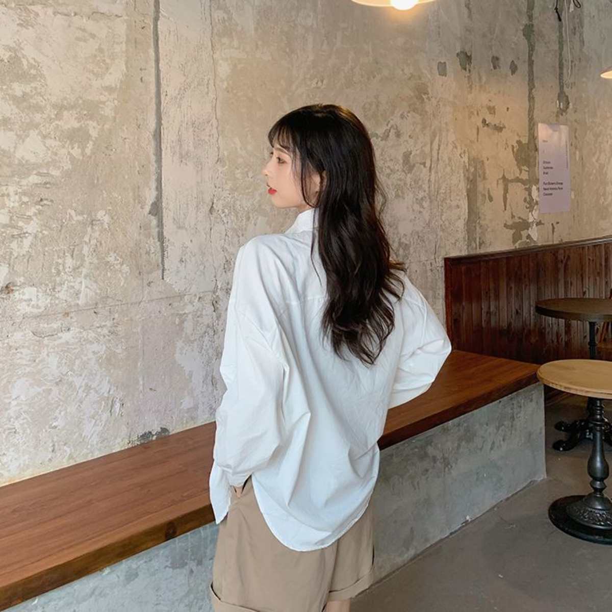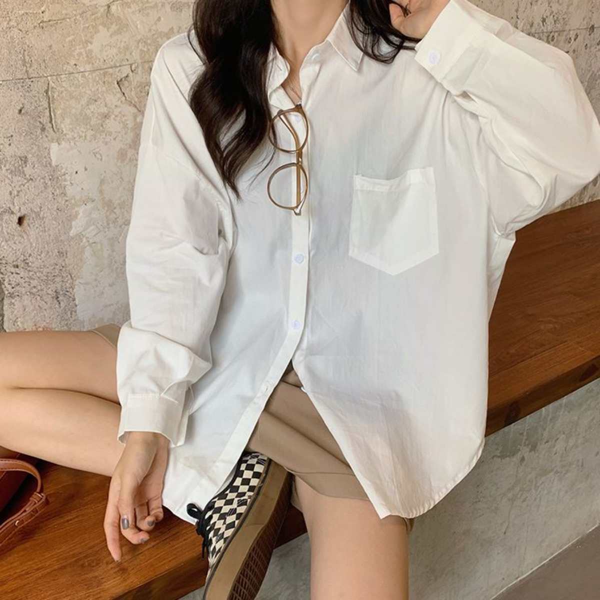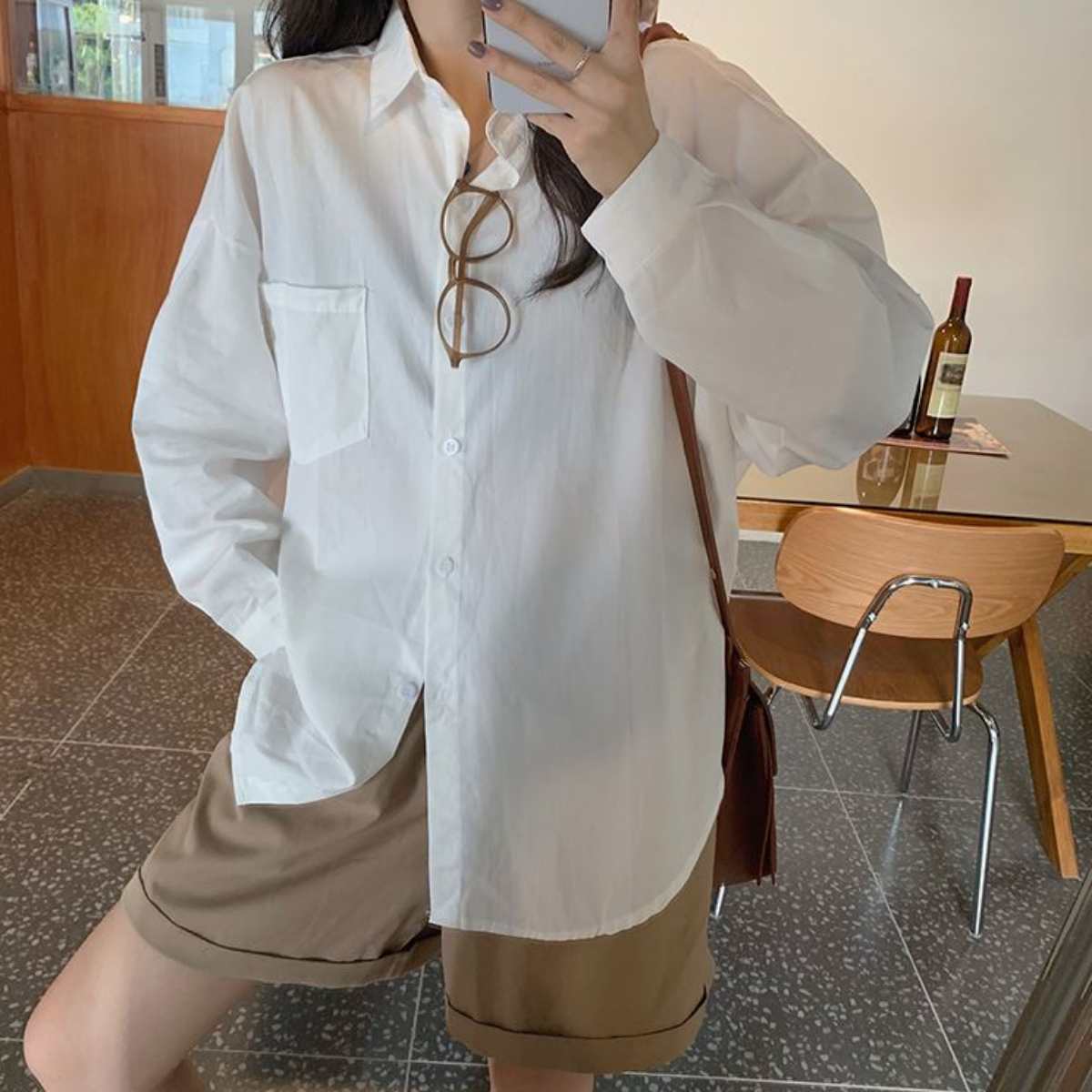 5色 カラー シャツ 長袖 シャツ ビッグシャツ レディース 長そで 無地シャツ ルーズシャツ 襟