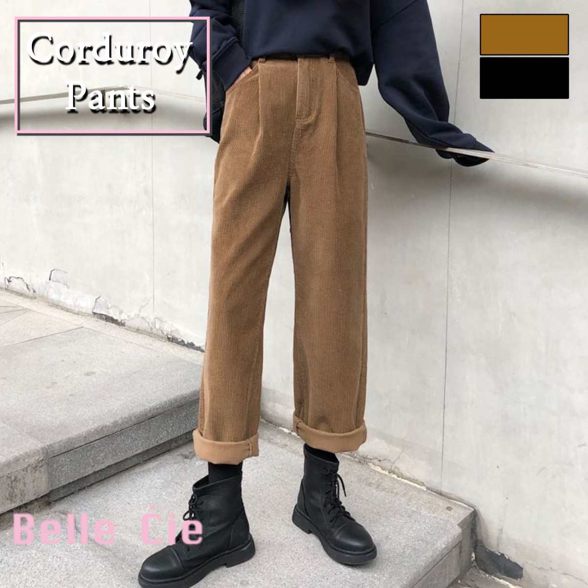 コーデュロイパンツ 韓国ファッション レディース ボトムス ウエストタック パンツ 秋冬 ズボン 冬