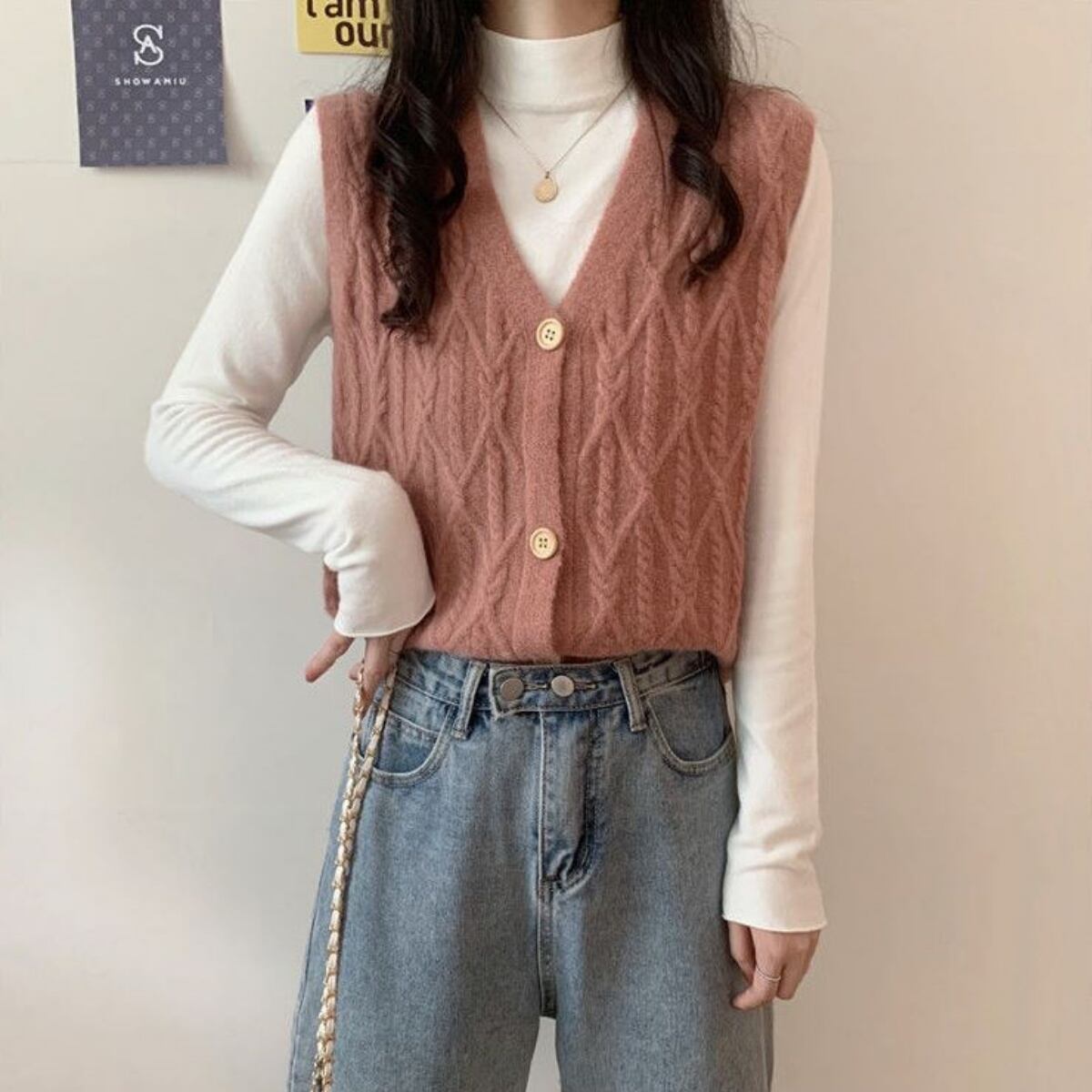 ケーブルニットベスト レディース ニットベスト セーター ウール混 トップス ベスト ガーリー 12