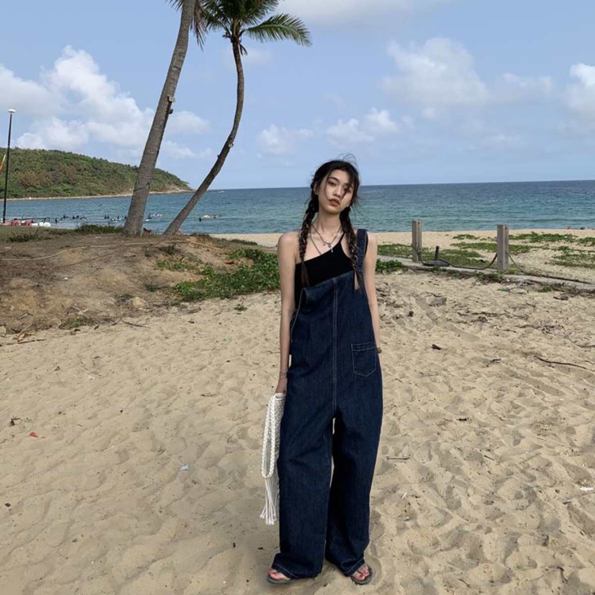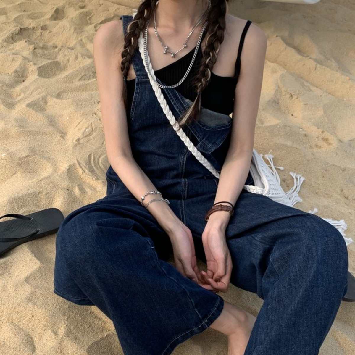 デニムオーバーオール オーバーサイズ レディース ビッグ サロペット ロングパンツ ワイドパンツ 大