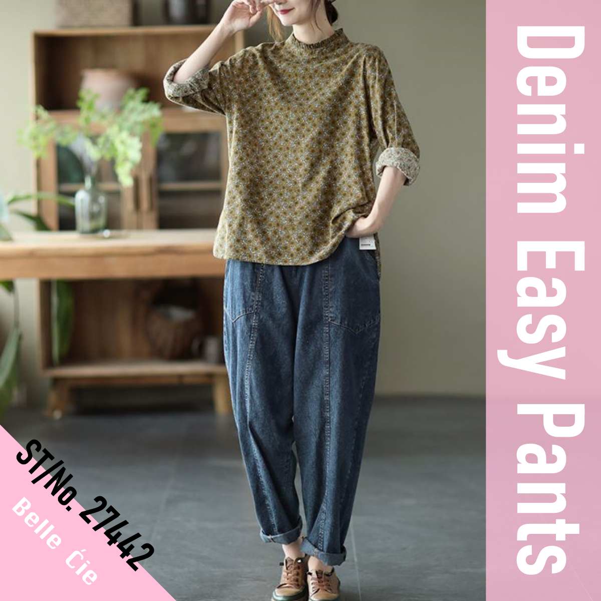 デニム イージーパンツ 韓国ファッション レディース テーパード パンツ ズボン ゆったり ジーパン