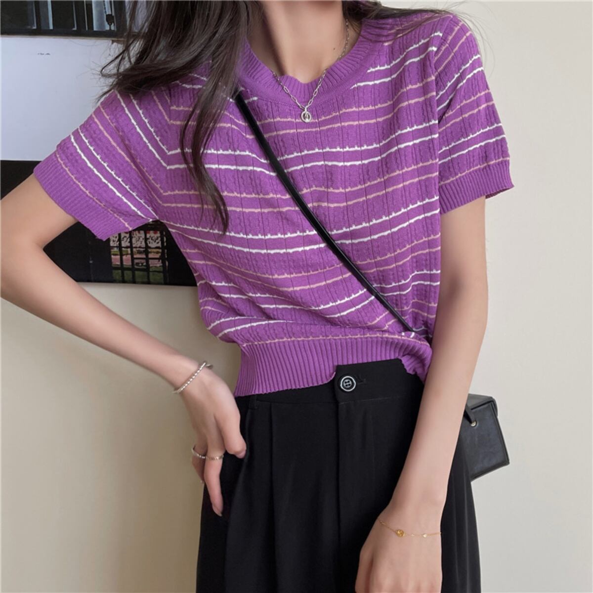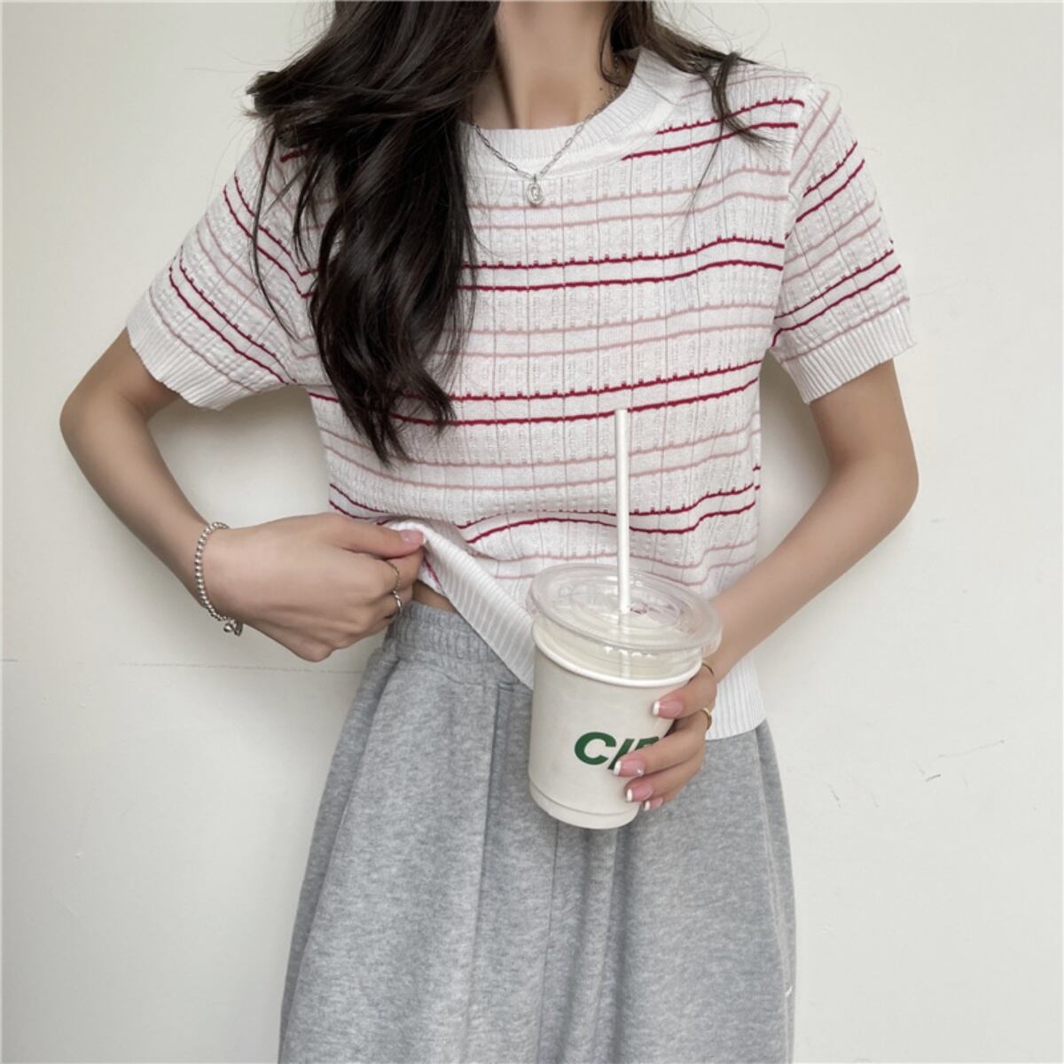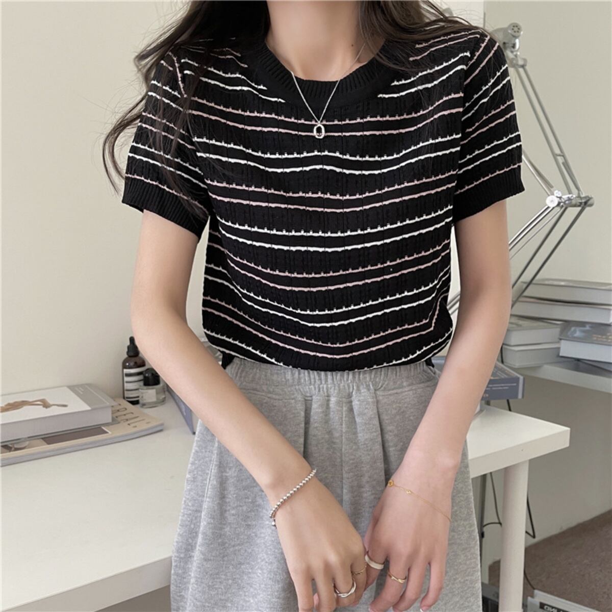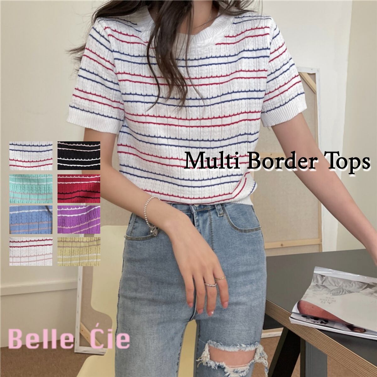 ボーダー ニットソー Tシャツ レディース トップス 夏服 カジュアル 服 ボーダーTシャツ かわい