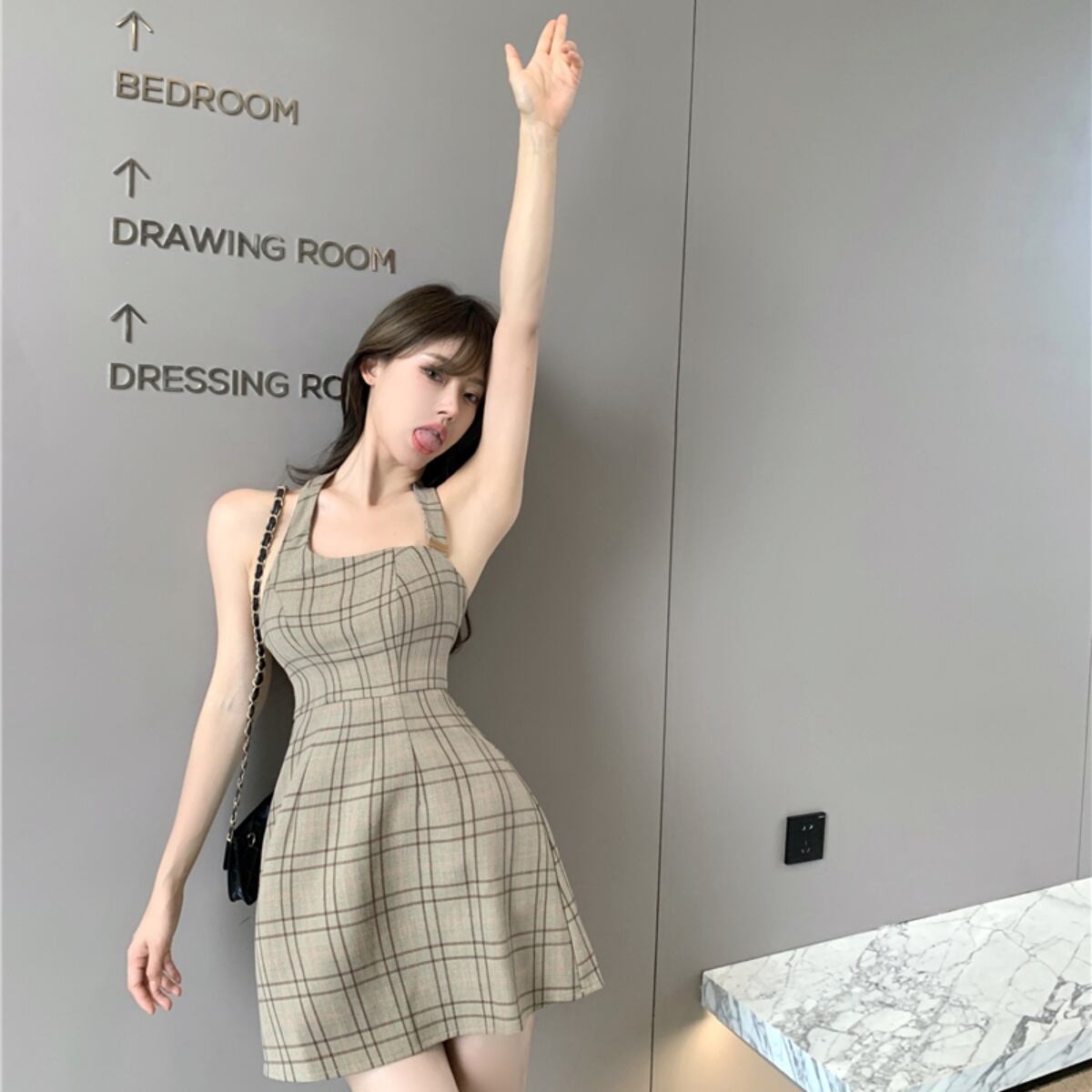 チェック柄 ワンピース レディース ミニ丈 エプロンワンピ ベアワンピ グレンチェック ミニワンピー