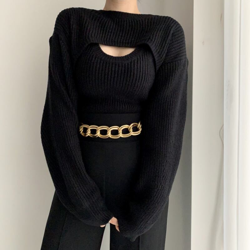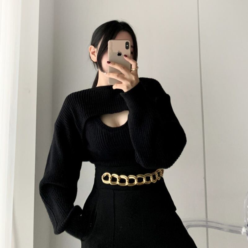 短丈ニット タンク アンサンブル 韓国ファッション レディース ショート丈 セクシー セーター 白