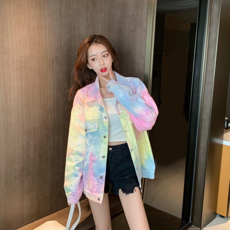 タイダイ ジャケット 韓国ファッション レディース カラフル ムラ染めツイル Gジャン アウター 秋