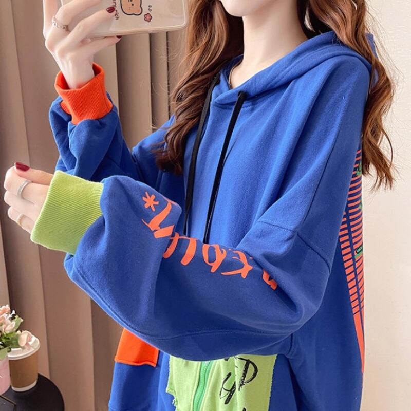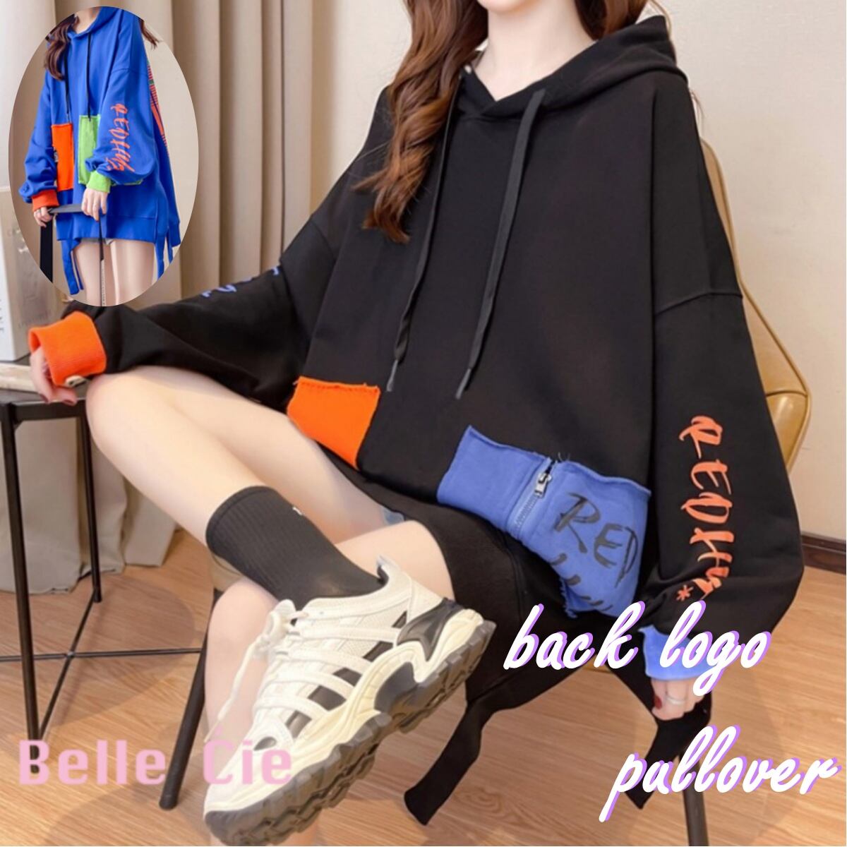 プルオーバー 韓国ファッション レディース バックロゴ 派手 ギャル カラーブロック セクシー カジ