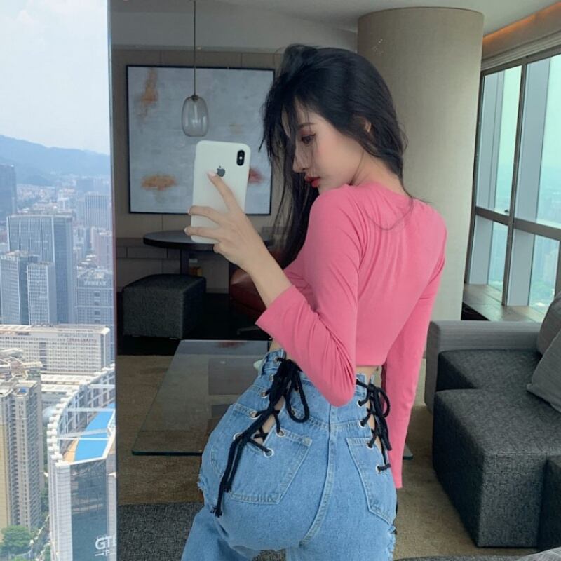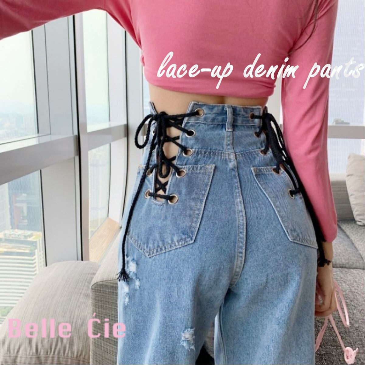 編み上げ デニム デニムパンツ セクシー レディース ジーンズ ギャル ロング丈 ダメージデニム ハ