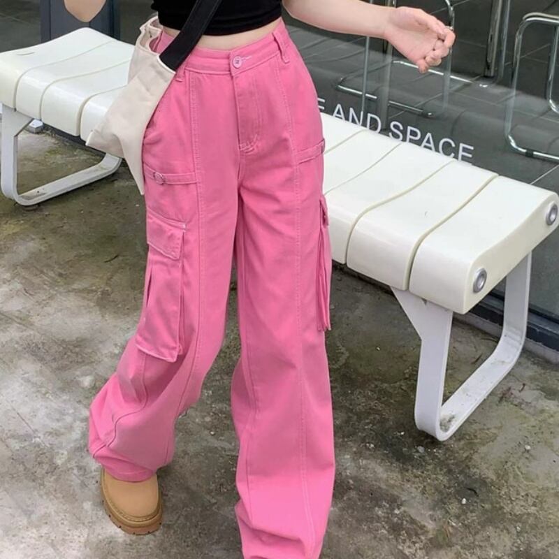 カーゴパンツ レディース ミリタリー ワイドパンツ ピンク 派手 ボトムス 原宿 ストリート かっこ