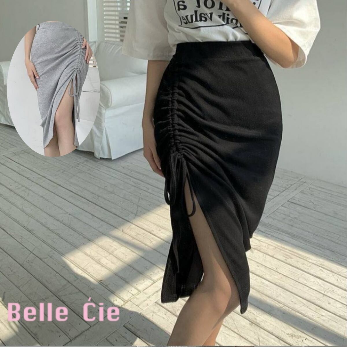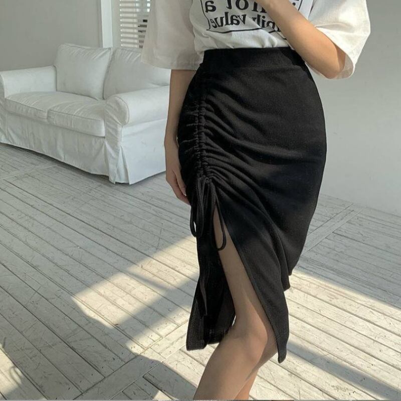 シャーリング タイトスカート レディース コンサバ タイト ボトムス 大きいサイズ ドロスト くしゅ