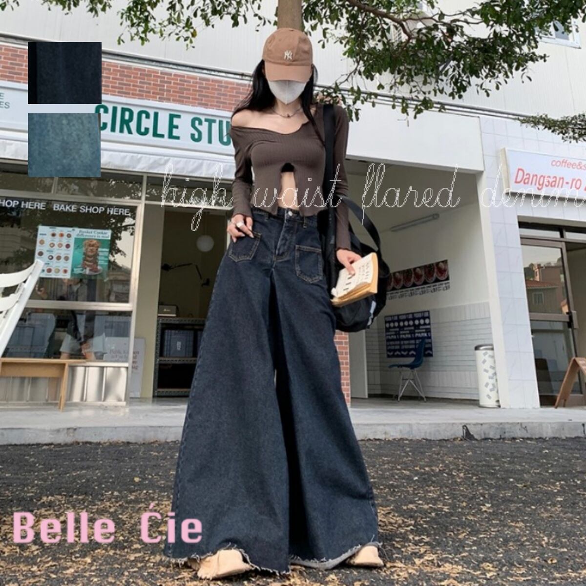 ワイドパンツ ファットパンツ デニム レディース フレアパンツ ボトムス ボトム スタイルアップ か