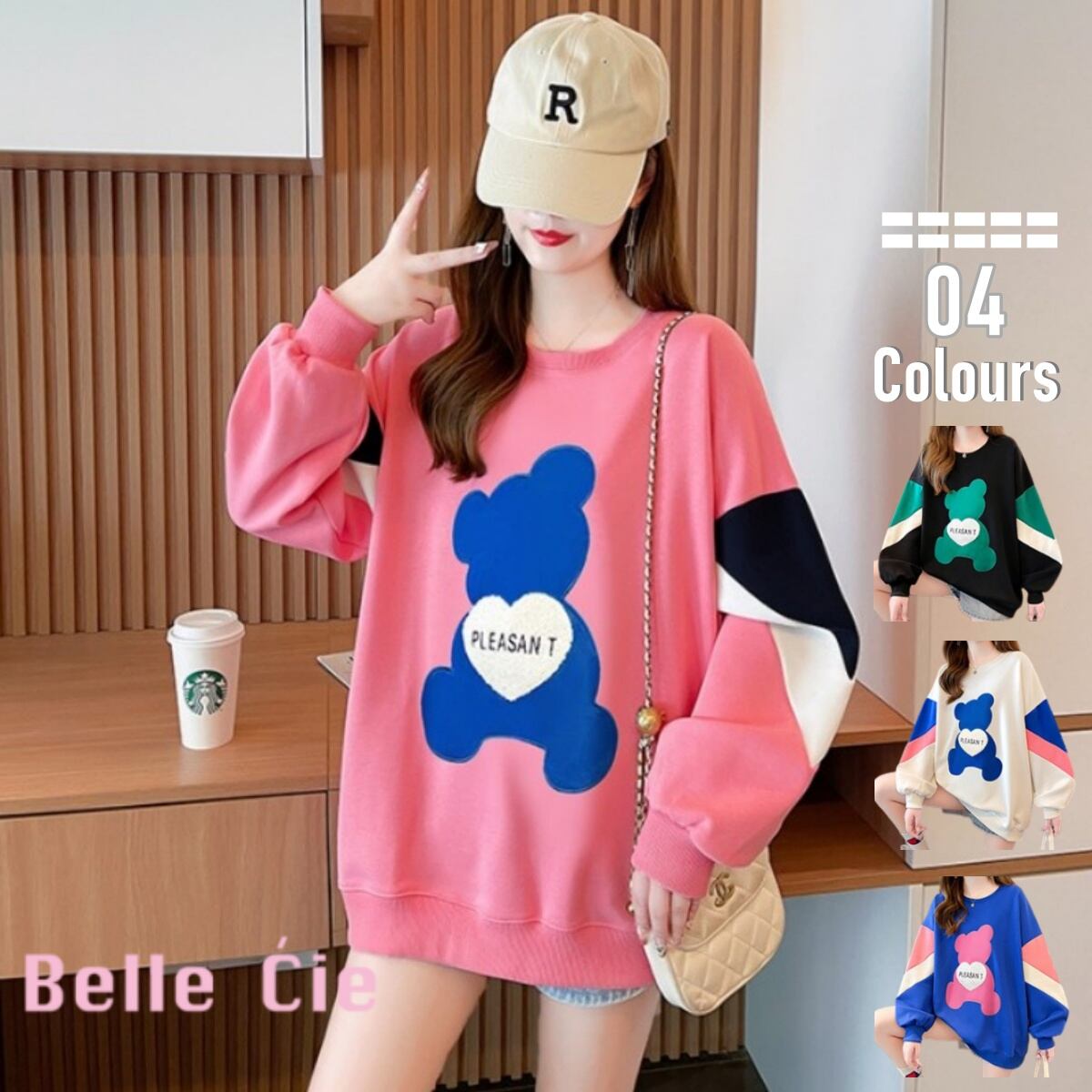 プルオーバー 長袖 くま カラフル トレーナー 韓国ファッション レディース ゆったり オーバーサイ