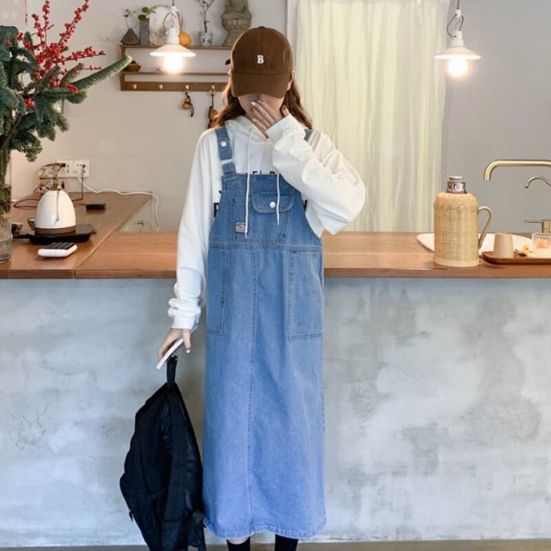 ジャンスカ レディース デニム ツイル サロペット スカート カジュアル ガーリー ベイカー かわい