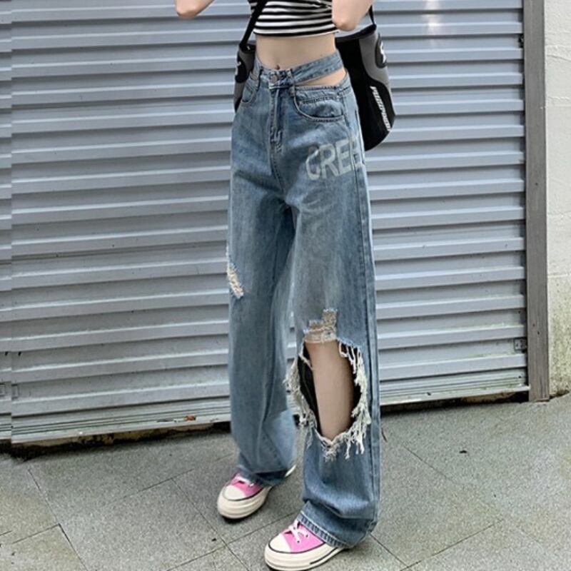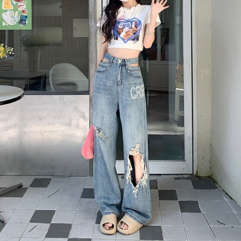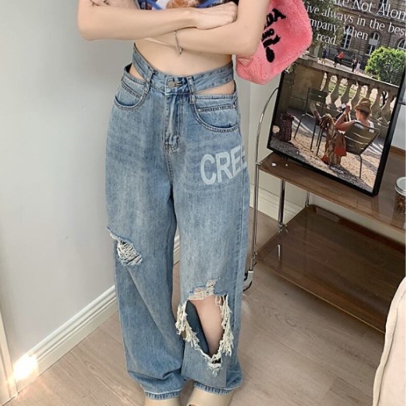 デニムパンツ レディース ダメージデニム ジーンズ ダメージジーンズ 破れ加工 ルーズ ゆったり デ