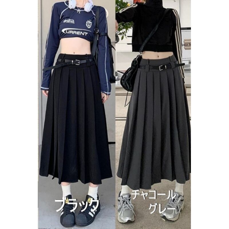 ミリタリースカート 韓国ファッション レディース スカート ロングスカート ドロスト くしゅくしゅ