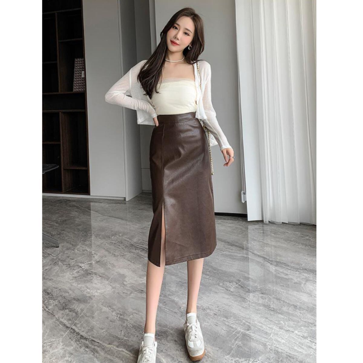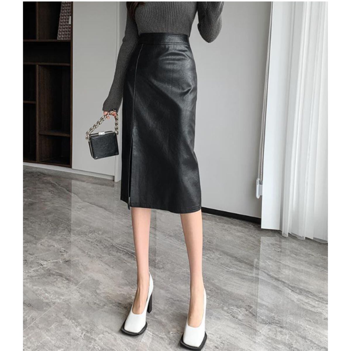 タイトスカート 韓国ファッション レディース スカート タイト スリット 合皮 フェイクレザー レザ