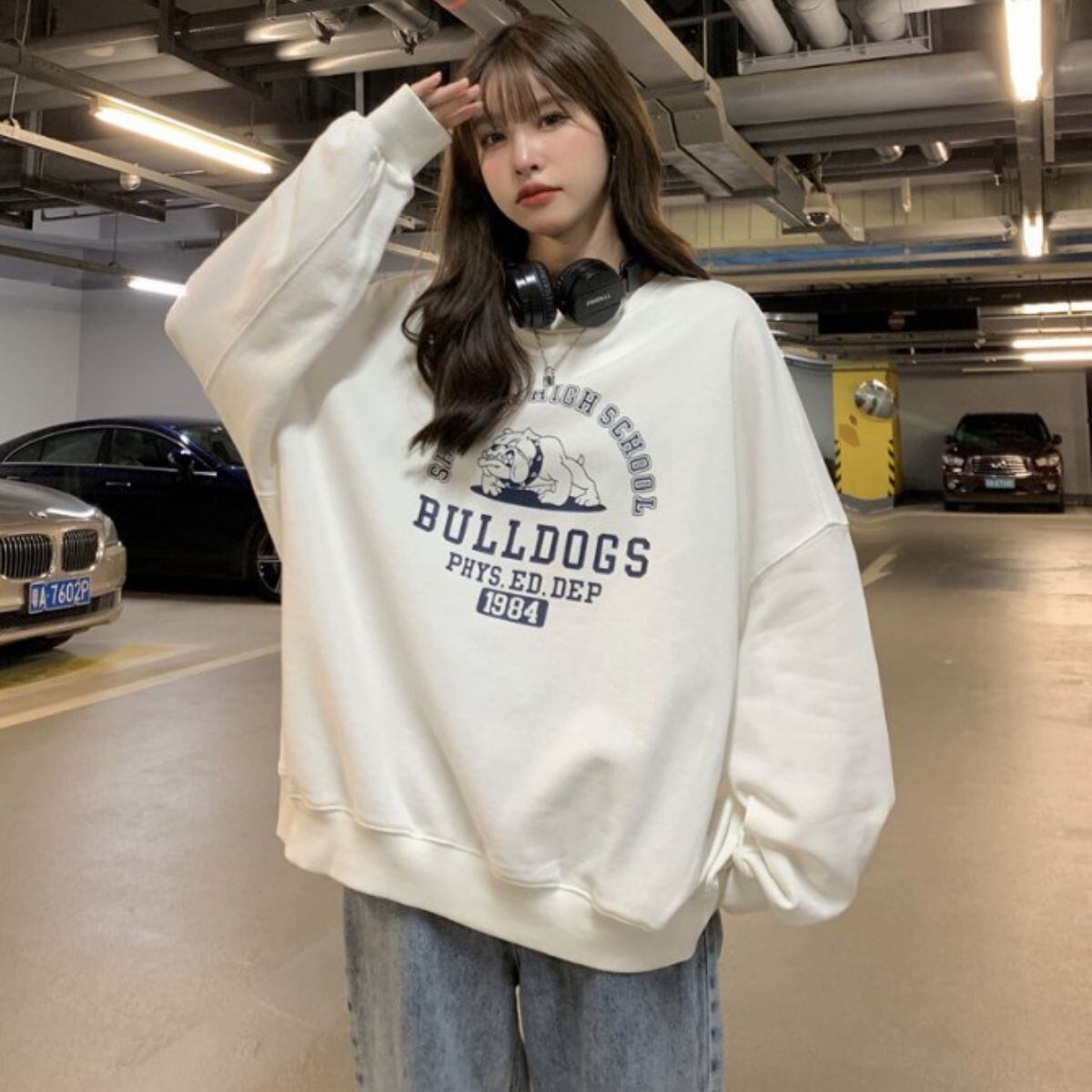 トップス プルオーバー 韓国ファッション レディース スウェット ロンT 裏毛 男女兼用 長袖 プリ