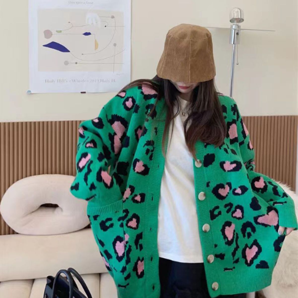 ニット カーディガン 羽織り レディース ヒョウ柄 レオパード ひょう 派手 ギャル かわいい 韓国
