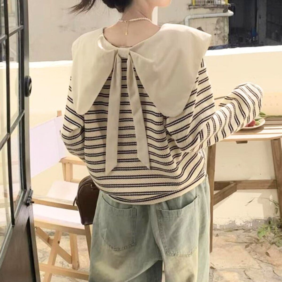 長袖 トップス ロンT スウェット レディース 韓国ファッション ボーダー ガーリー フェミニン リ