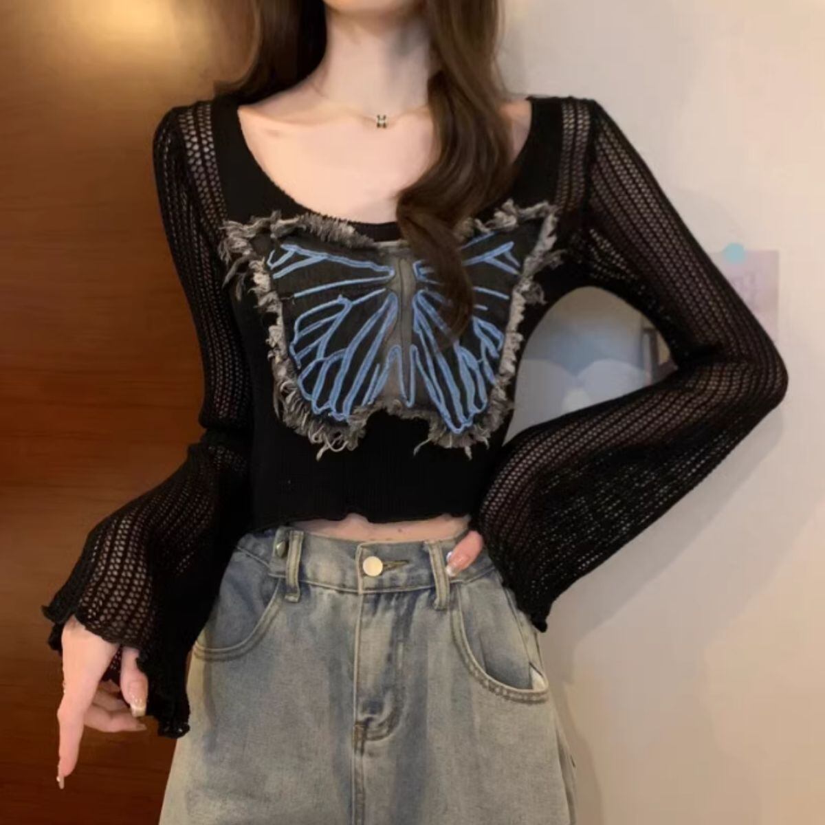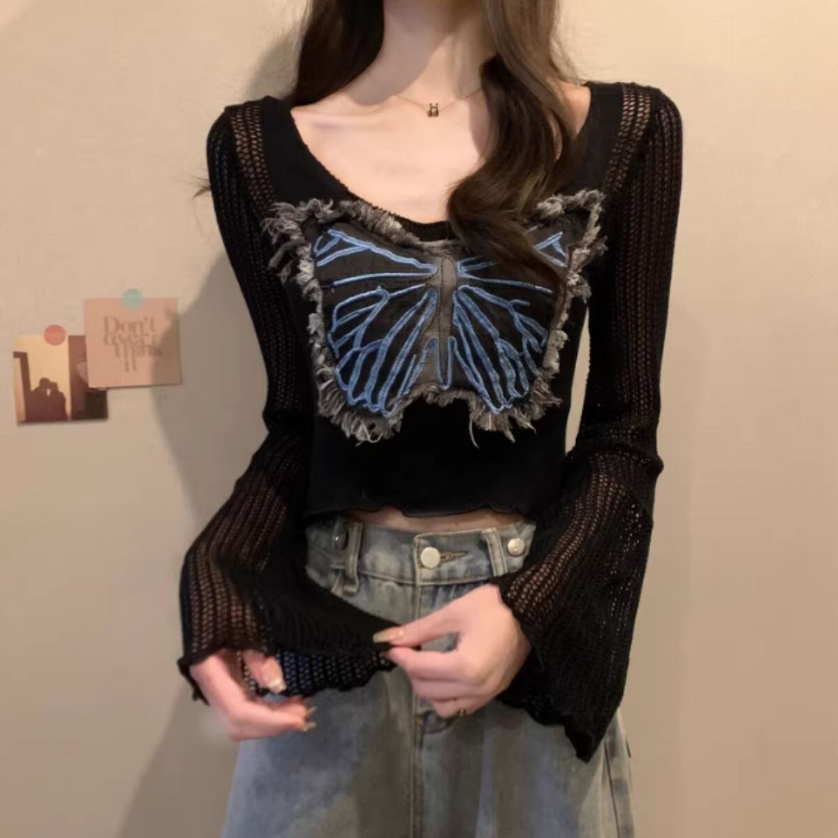 ロンT 長袖 Tシャツ ニット レディース 韓国ファッション カジュアル 秋冬 ギャル B系 ダンス
