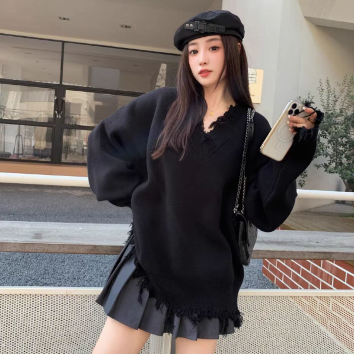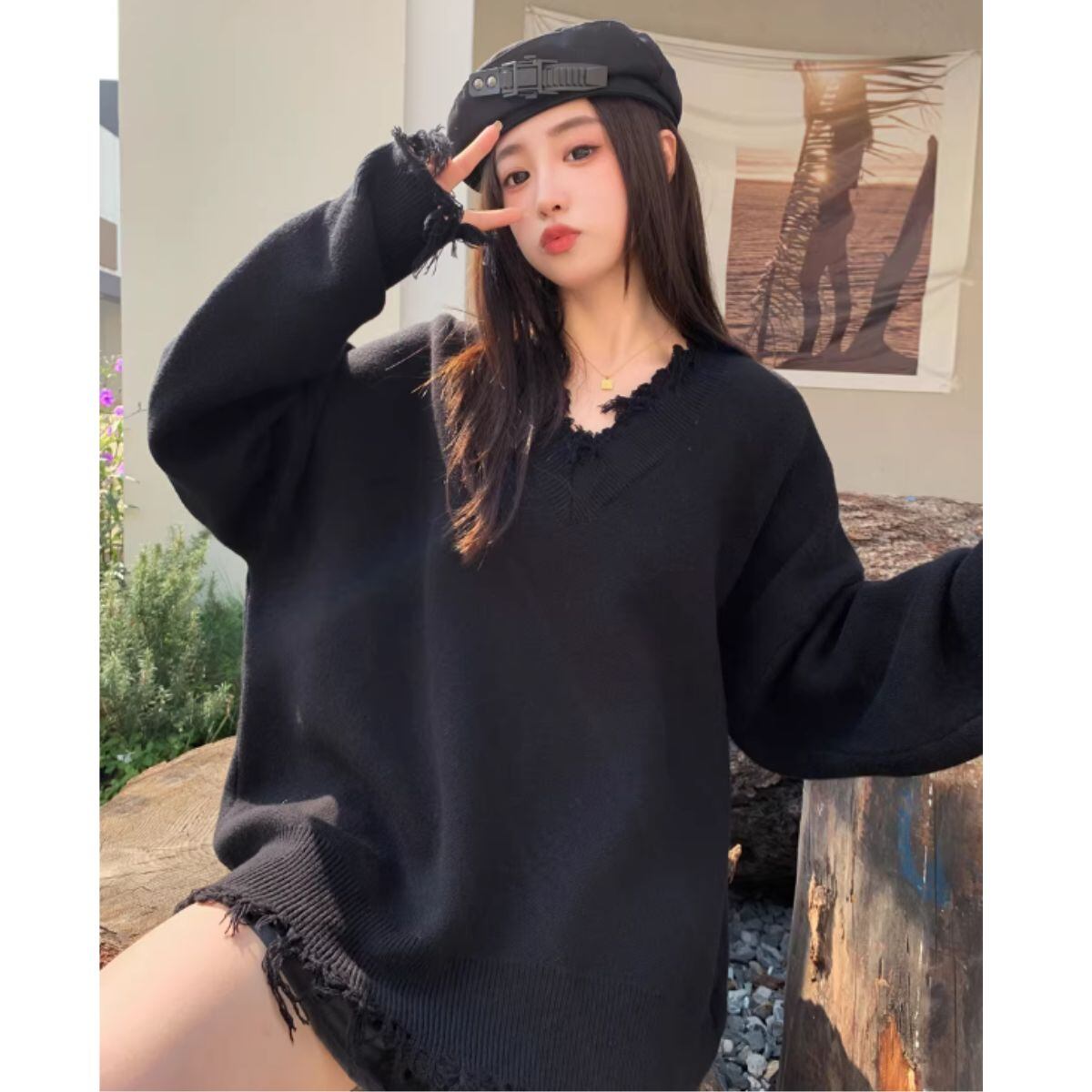 ニット 長袖 セーター ゆったり レディース 韓国ファッション Vネック 秋冬 かっこいい シンプル