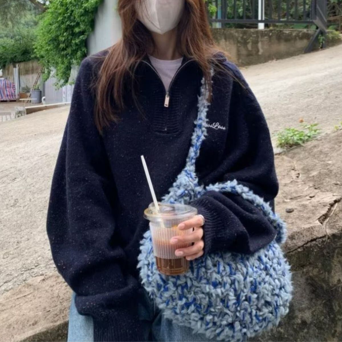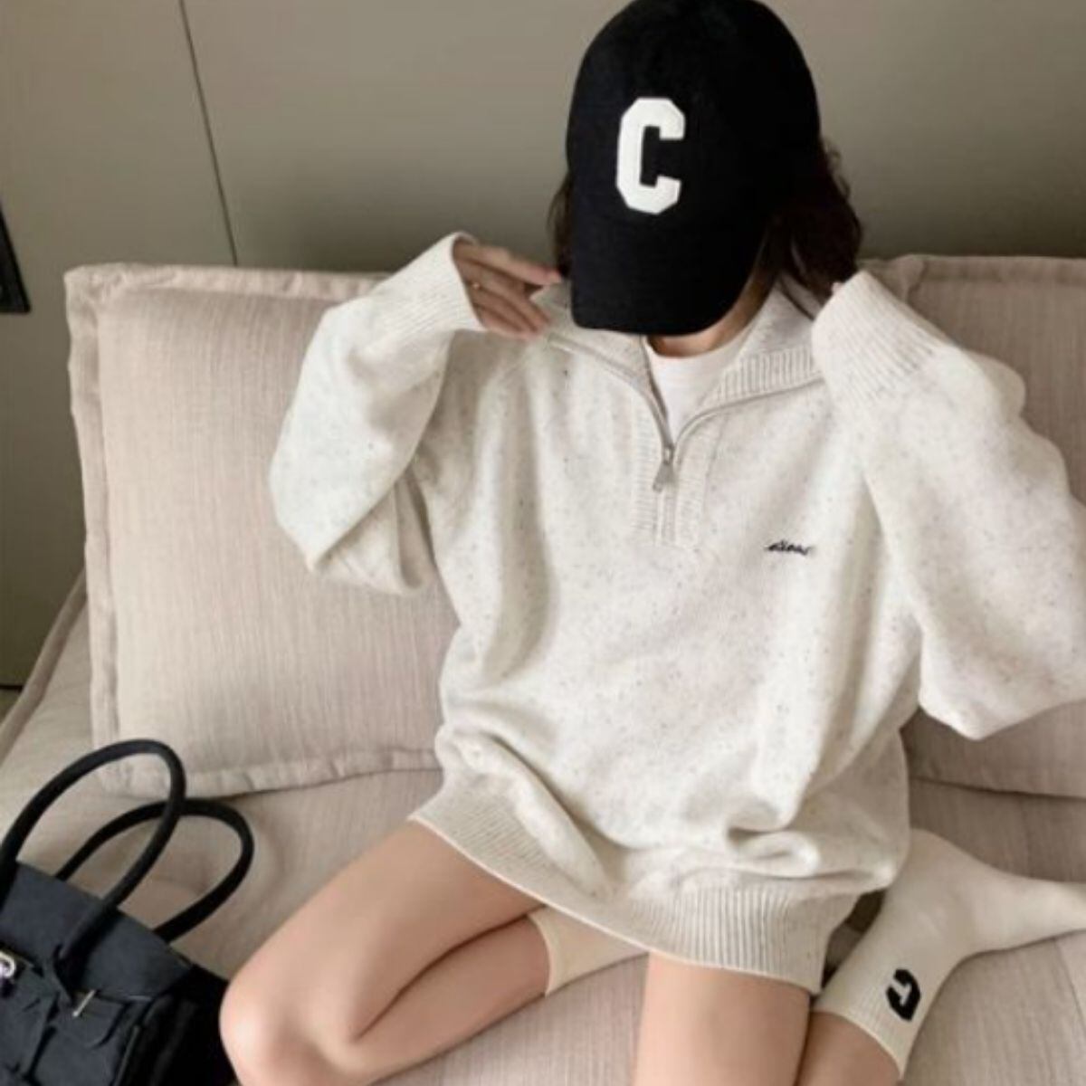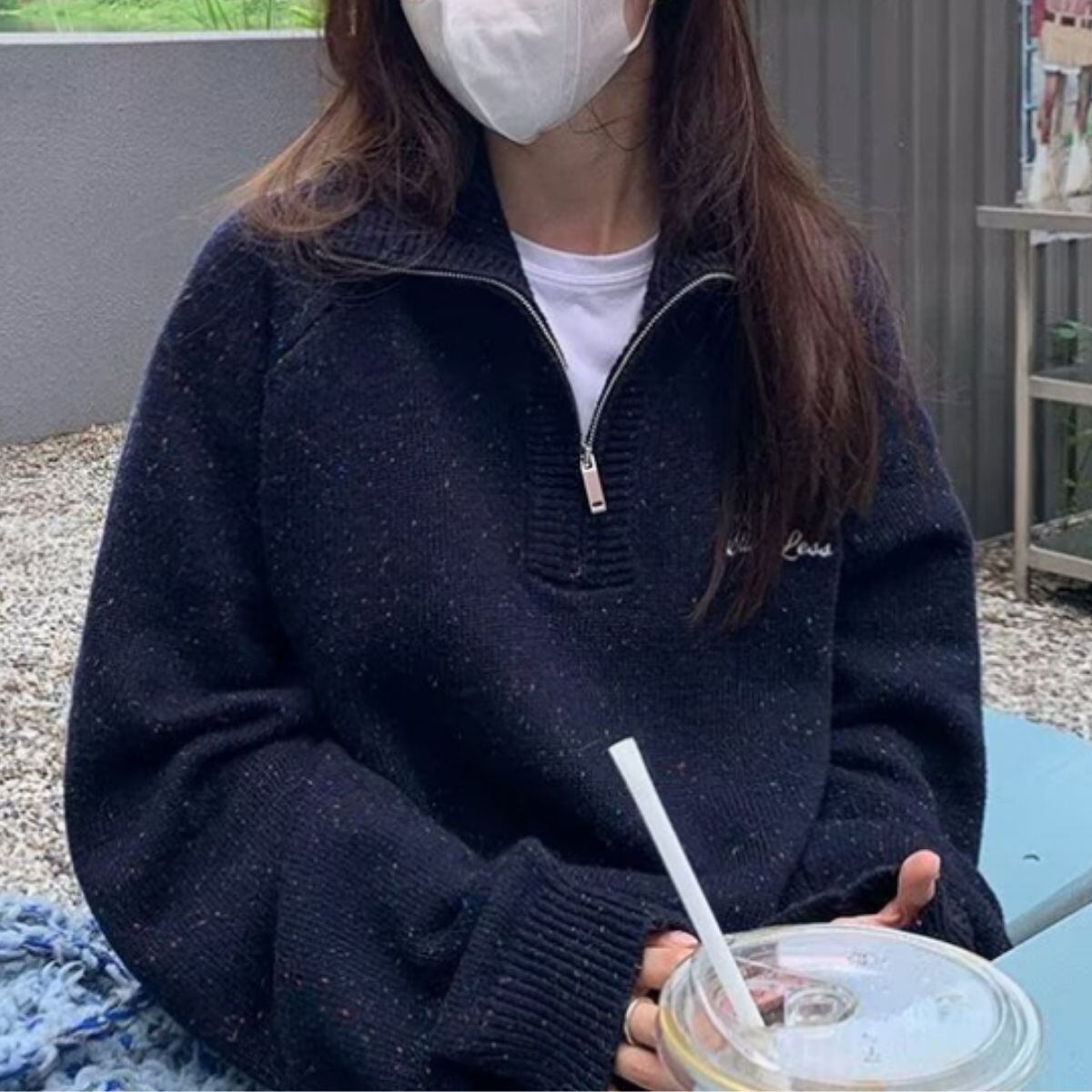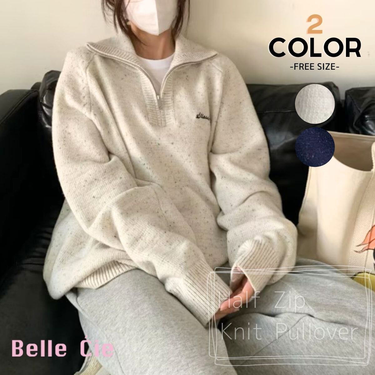 ニット ハーフジップ 長袖 杢 セーター レディース 韓国ファッション 秋冬 カジュアル メンズライ