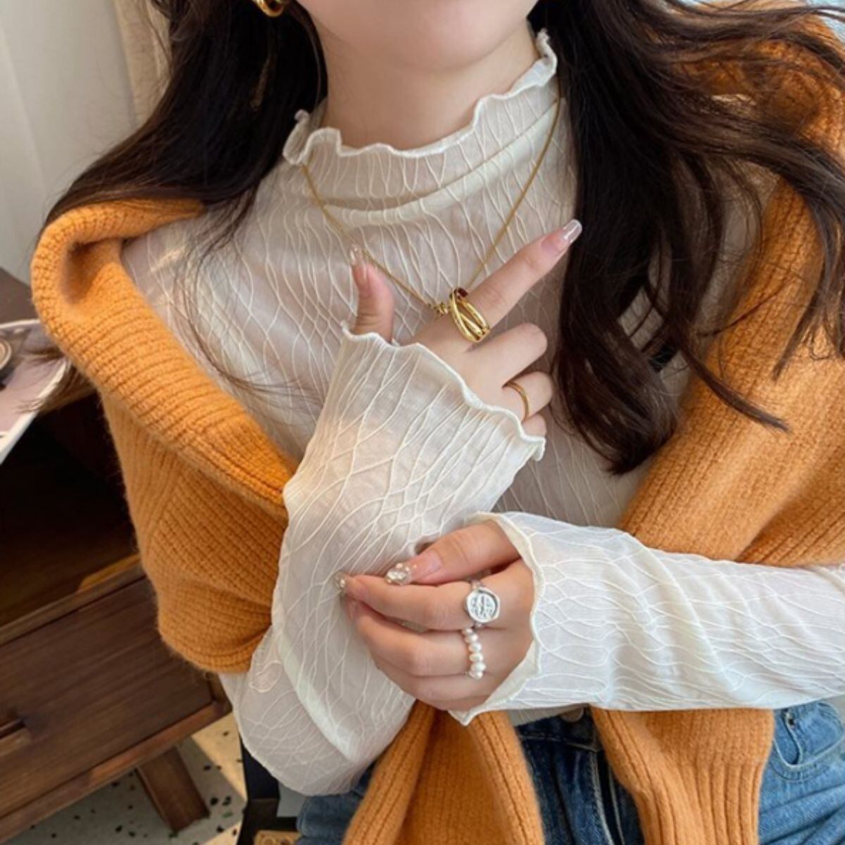 シースルー シアー 長袖 ハイネック 重ね着 レディース 韓国ファッション セクシー おしゃれ 大人