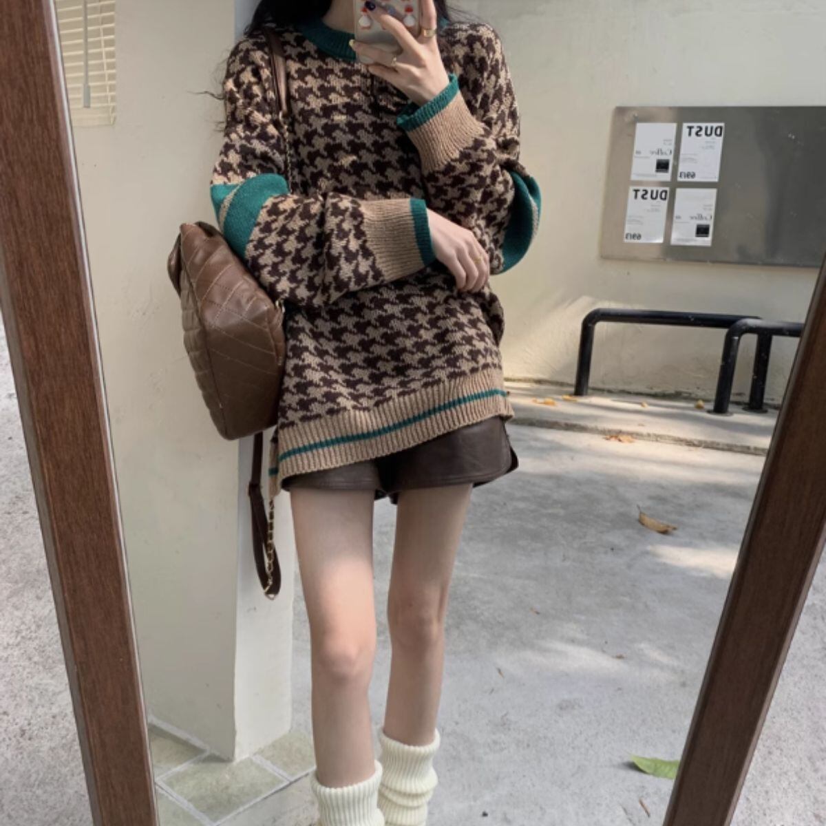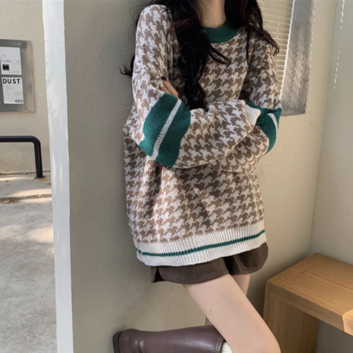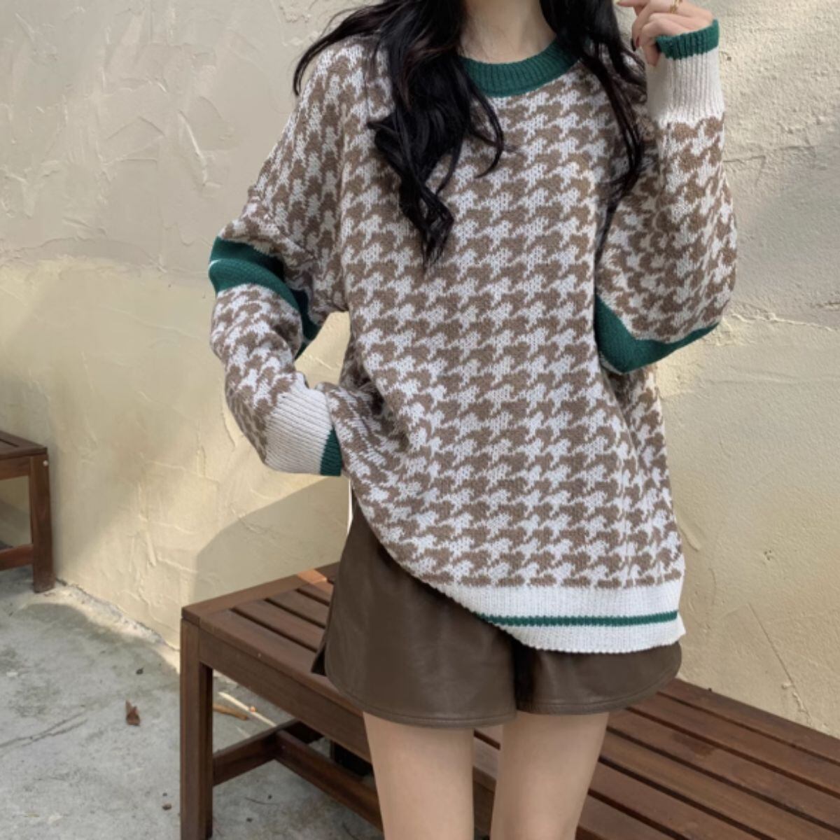 ニット セーター プルオーバー 長袖 総柄 千鳥 レディース 韓国ファッション チドリ 柄 ギャル