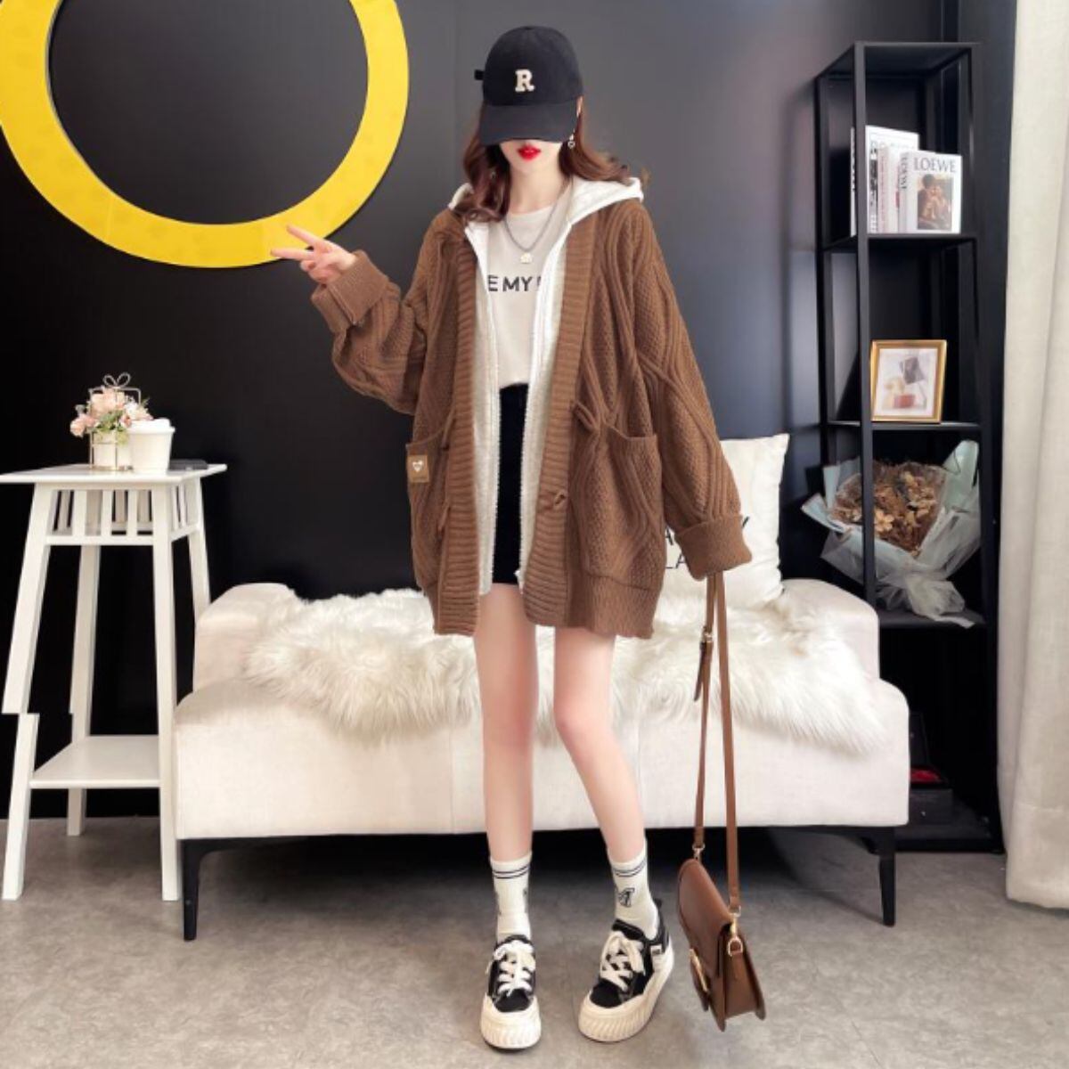 羽織り パーカー ニット スウェット パーカー セーター レディース アウター あたたかい 韓国ファ