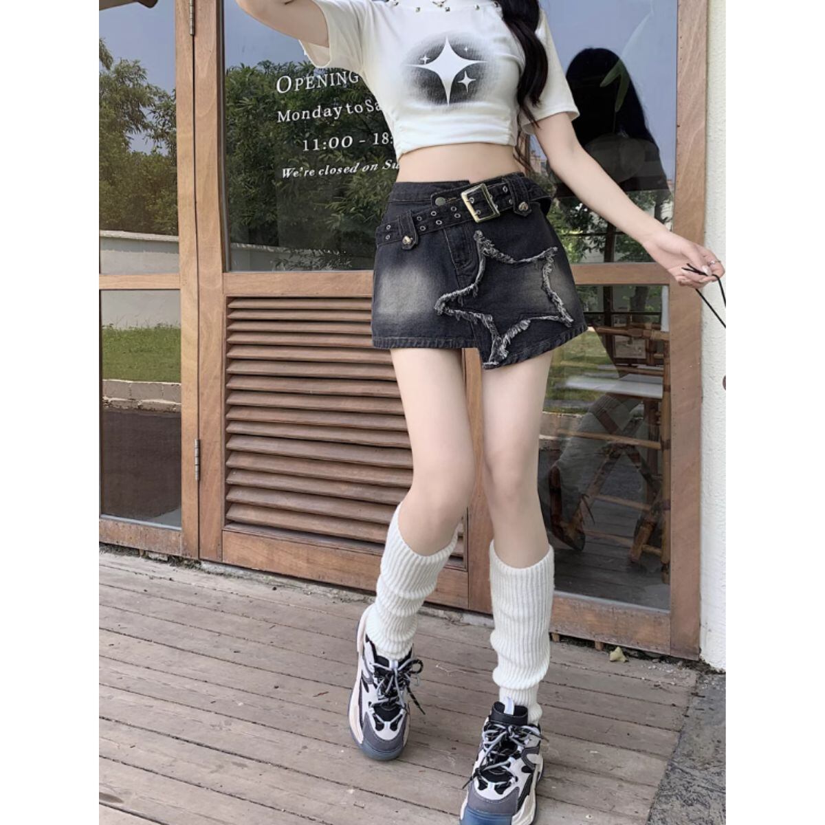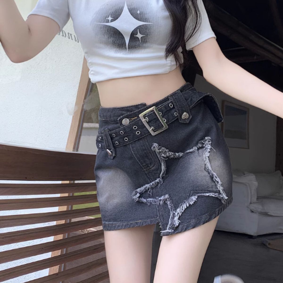 デニム ショートパンツ スカート ミニスカ インパンツ スター 星 レディース 韓国ファッション ユ