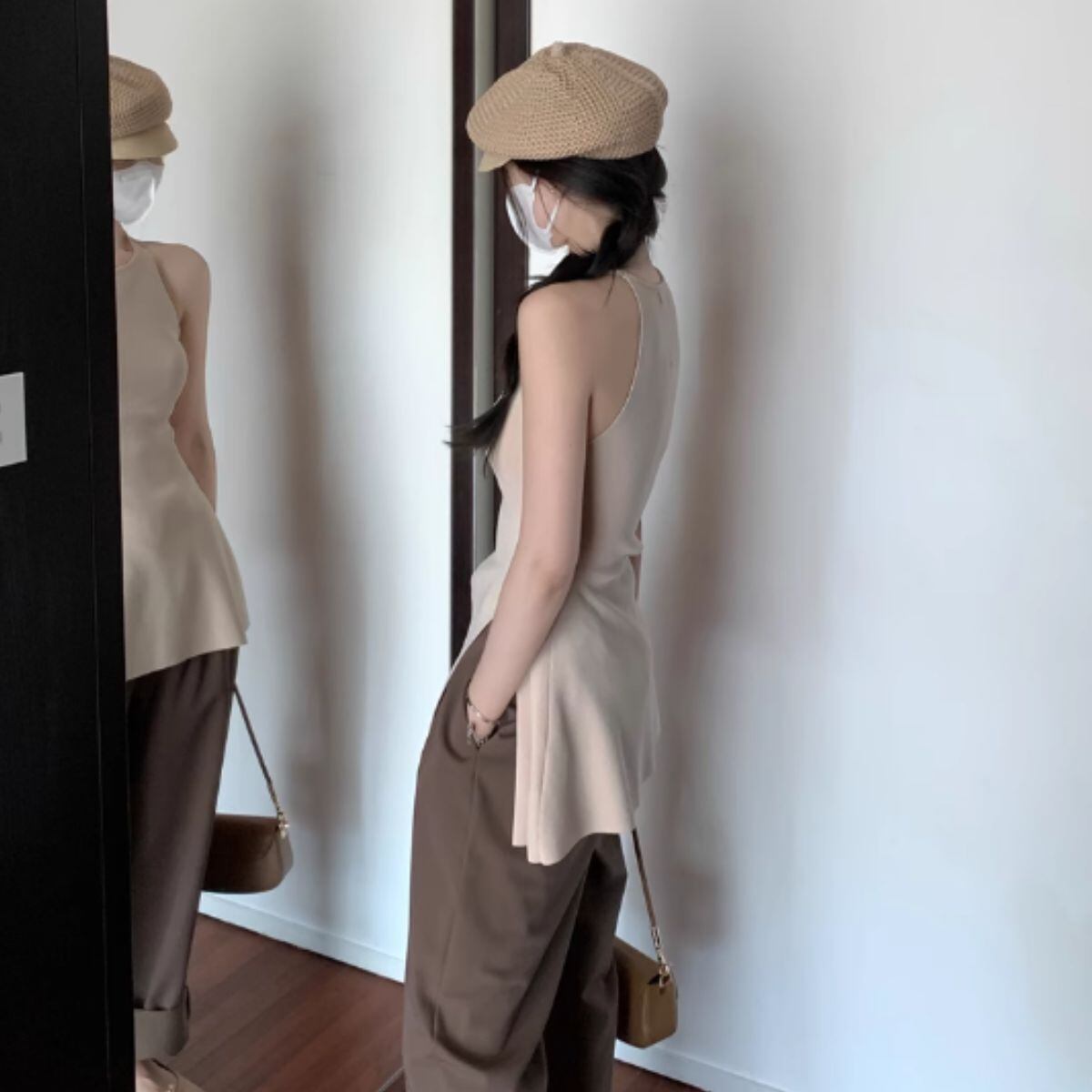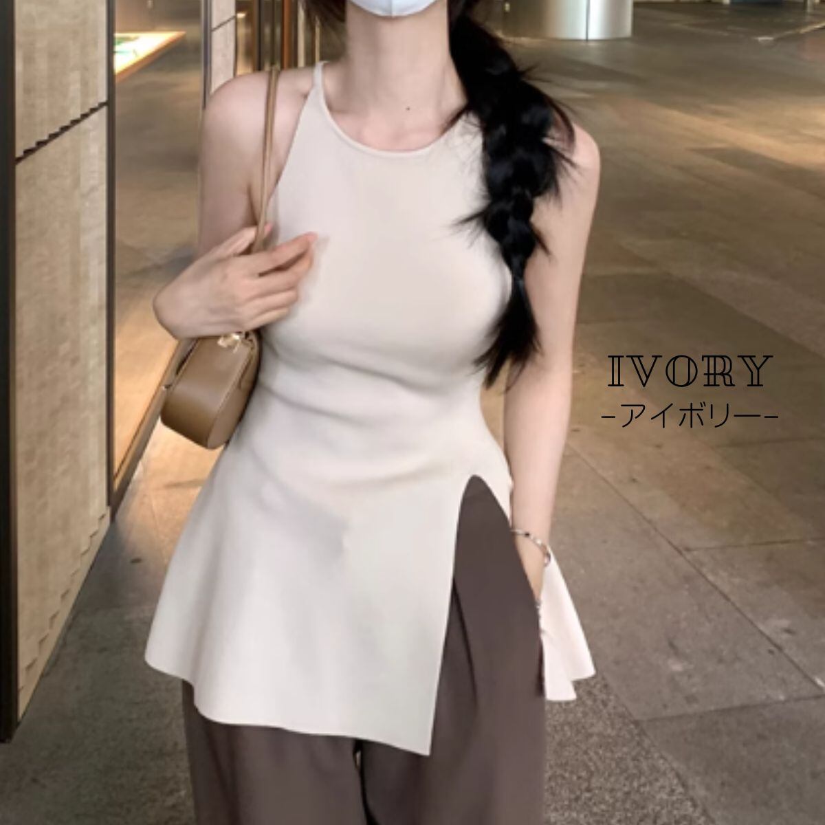キャミ タンクトップ サマーニット フレア チュニック かわいい レディース 韓国ファッション 夏服