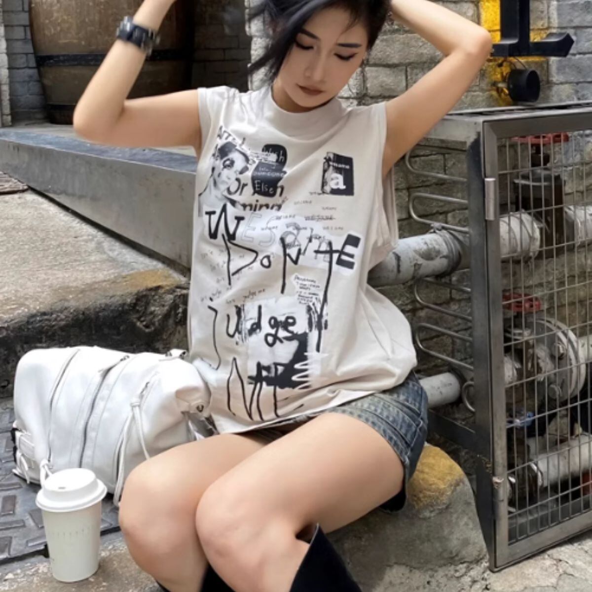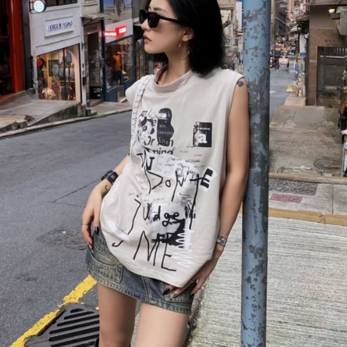 タンクトップ Tシャツ ノースリーブ ストリート パンク ロック レディース 韓国ファッション かっ