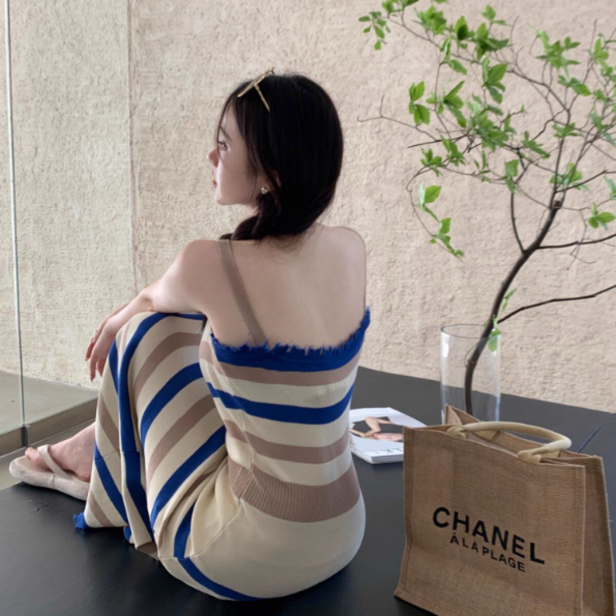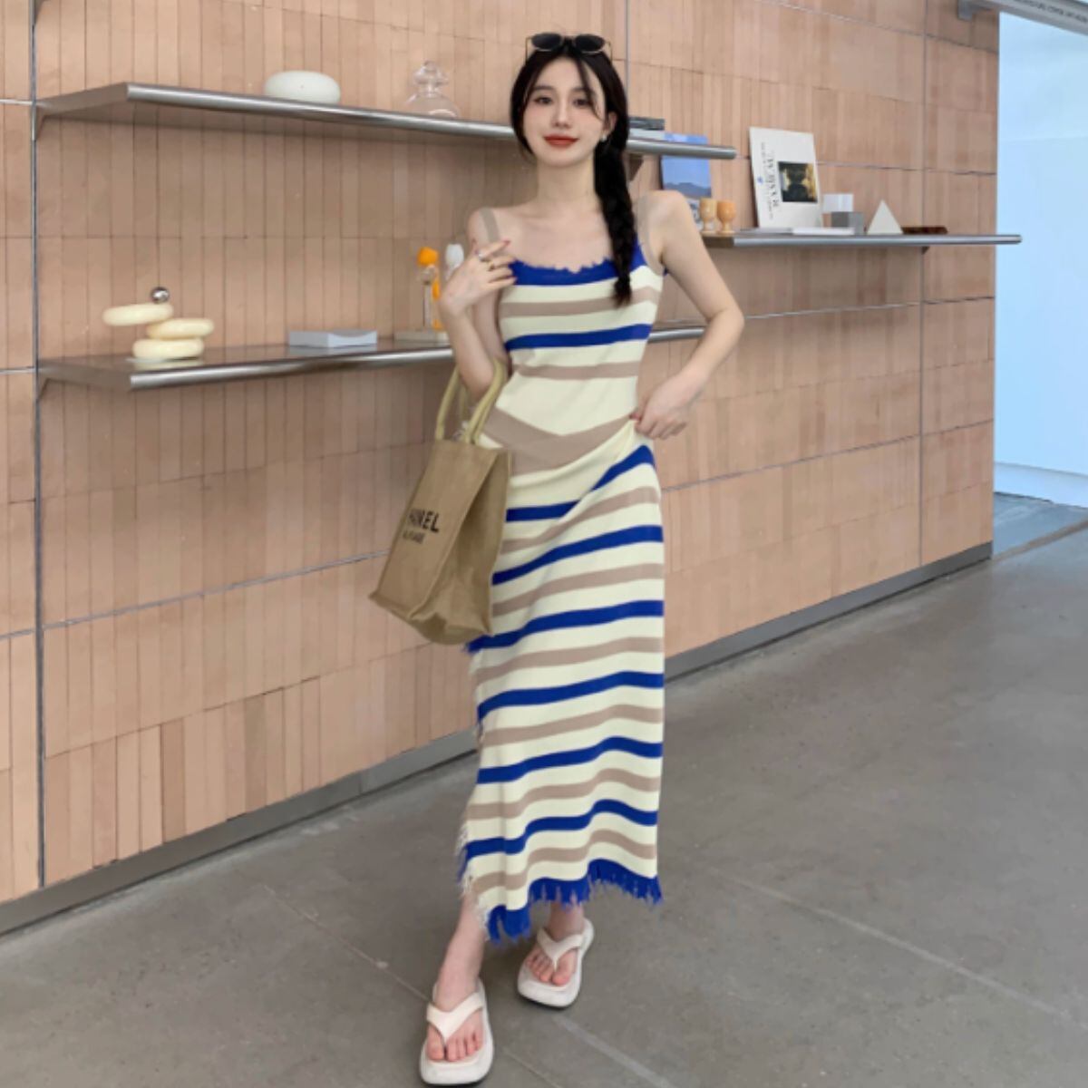 ニット サマーニット ワンピース キャミワンピ ロング丈 レトロ レディース 韓国ファッション ボー
