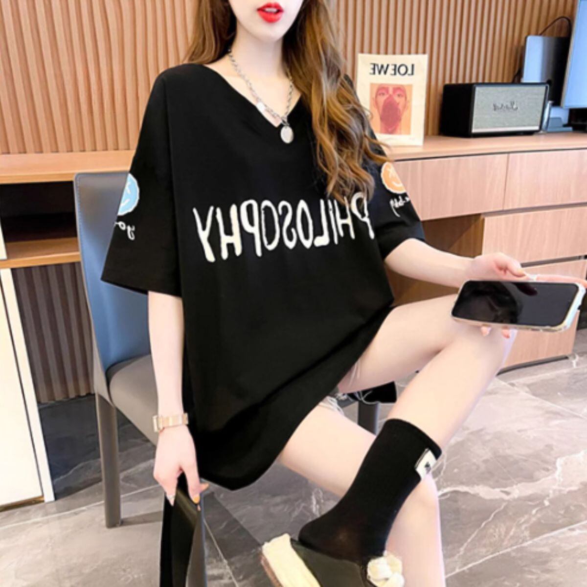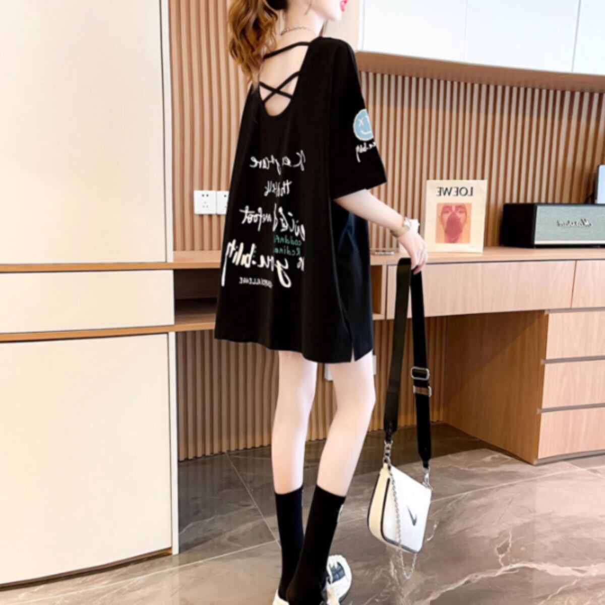 Tシャツ 半袖 ビッグシルエット 大きいサイズ プリント ユニーク レディース ドロップショルダー