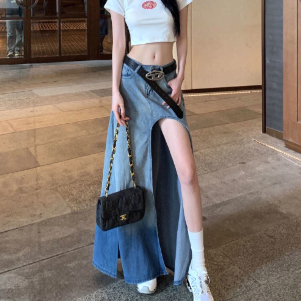 スカート ロング スリット ロングスカート フレア Aライン 夏 レディース 韓国ファッション シン