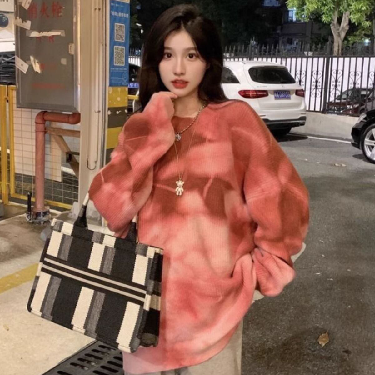 ニット トップス プルオーバー 総柄 グラデーション 派手 秋冬 レディース 韓国ファッション セー