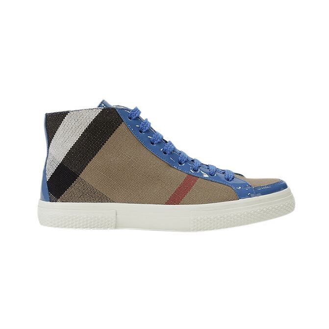 バーバリーBURBERRY レディースオールトライプハイカットスニーカー 3941032 4371T HYDR-BLUE