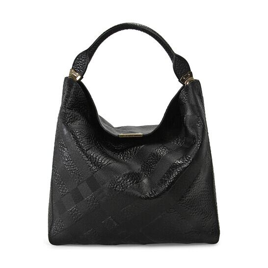 バーバリー BURBERRY レディース エンボス チェック レザー トートバッグ 3938788 00100 BLACK