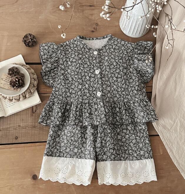 2025新作| 韓国風 キッズ ベビー服 トップス+ズボン 小花セットアップ★73cm~100cm