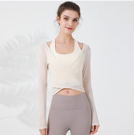 ヨガウェア トップス ヨガウェア フィットネス バレエ ダンス レイヤード 吸汗 長袖 レディース