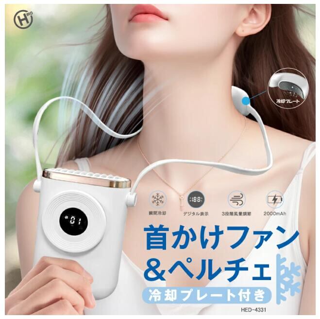首かけファン&ペルチェ 2つのパワー(冷却エアコン + 送風機) 首掛け扇風機 冷却プレート
