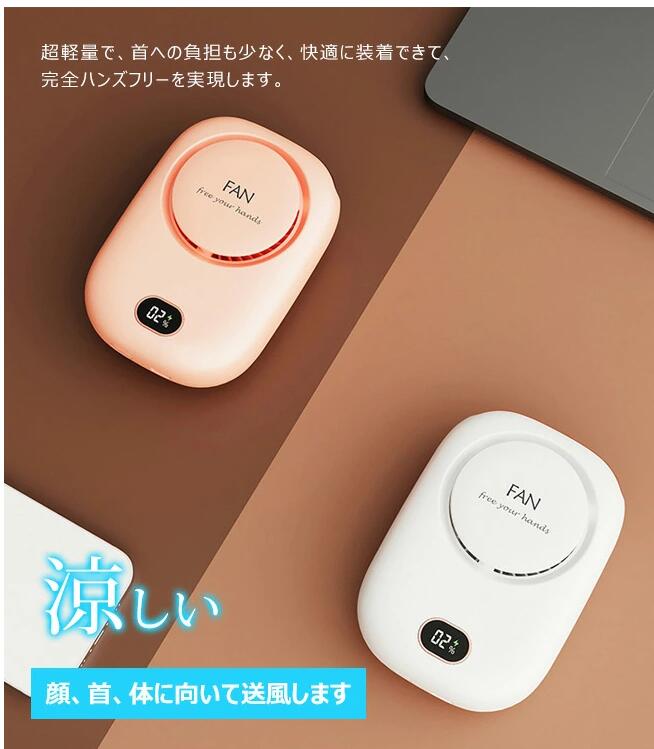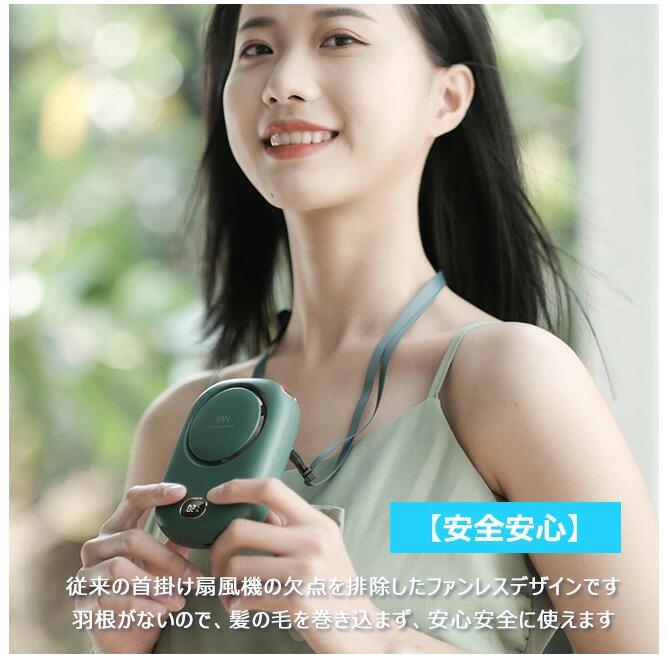 首掛け扇風機 強風 羽根なし 首掛け 急速冷却 2000mAh 3段階調節 USB 充電式 静音携帯扇風機