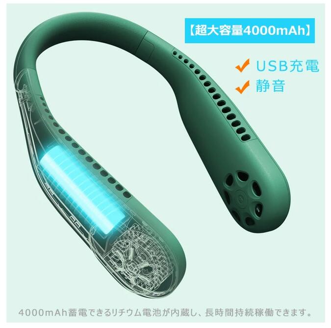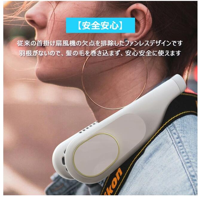 首掛け扇風機 強風 羽根なし 首掛け 急速冷却 4000mAh 3段階調節 USB 充電式 静音