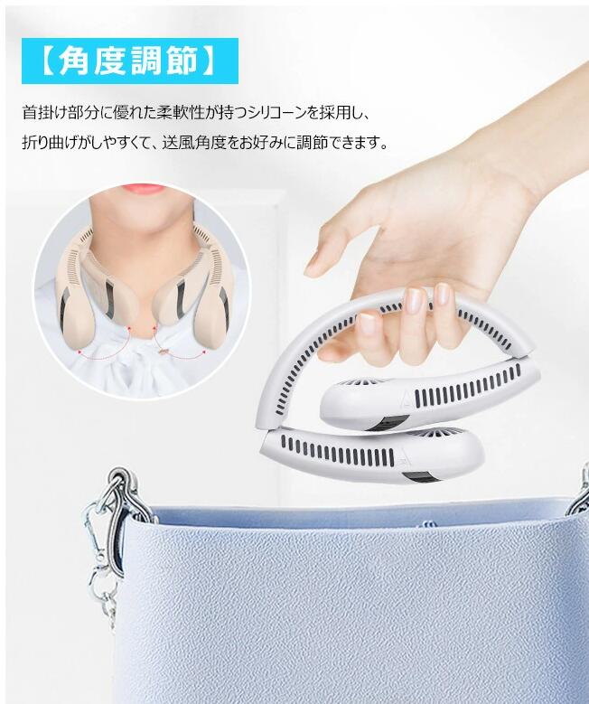 首掛け扇風機 強風 羽根なし 首掛け 急速冷却 5000mAh 3段階調節 USB 充電式 静音 充電ケーブル付属
