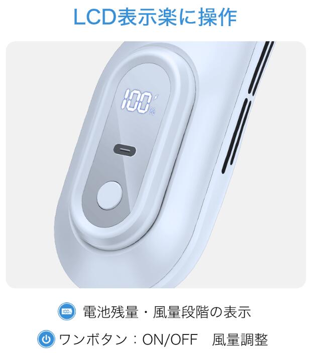 首掛け扇風機 ネッククーラー 羽なし 接触涼感&LED表示 軽量 静音 ハンディ 扇風機 首かけ