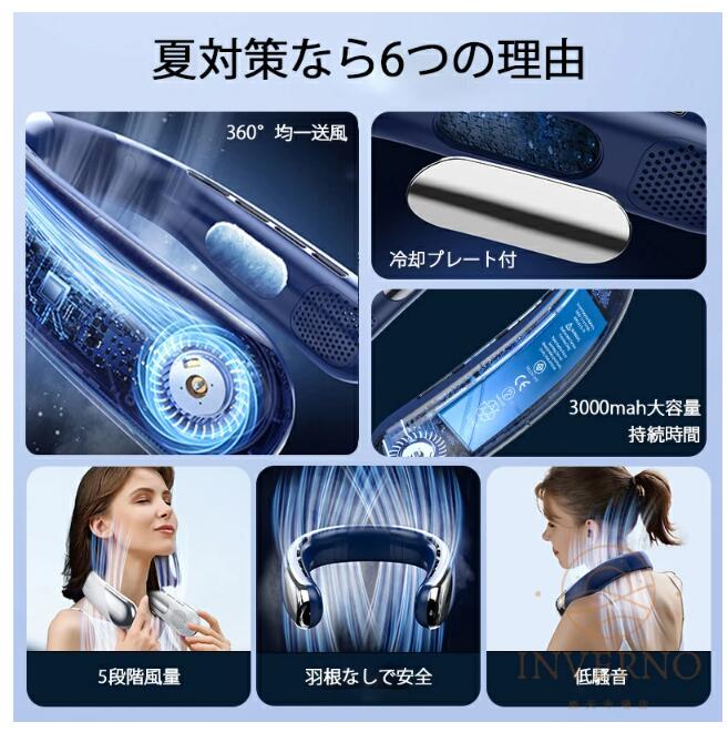 首掛け扇風機 ネッククーラー 冷却プレート 羽なし 接触冷感 扇風機 首かけ 5段階風量 LEDスクリーン